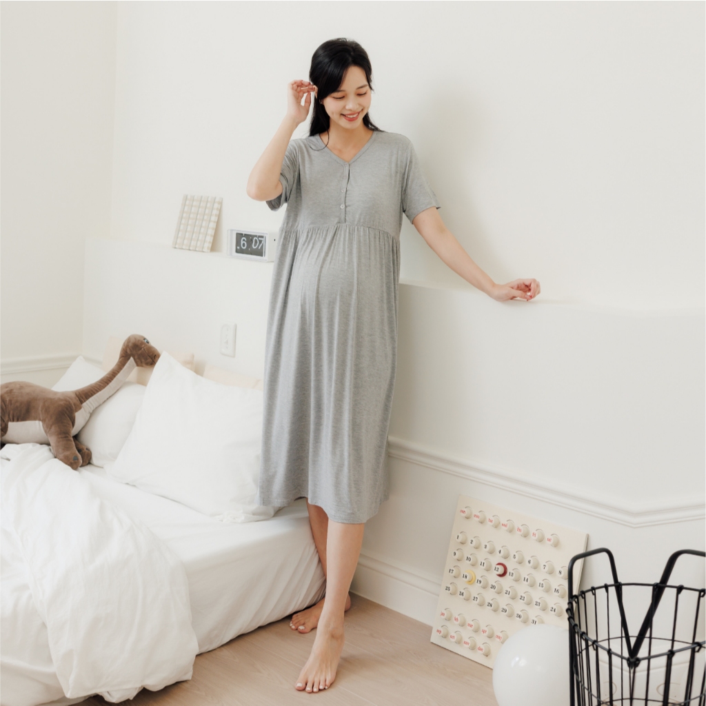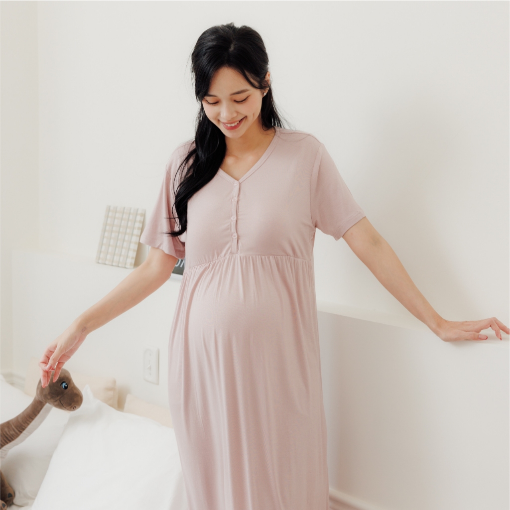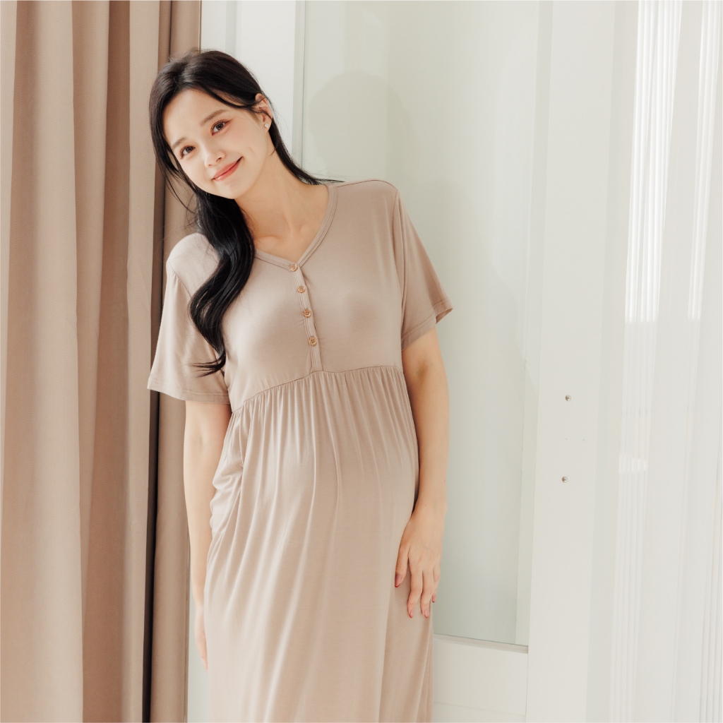 Bra微涼午後莫代爾居家洋裝 M~L 孕婦裝 居家洋 哺乳衣 月子服 孕婦裝 短袖 [A1977]灰,M|灰,L|水藍,M|水藍,L|粉,M|粉,L|可可,M|可可,L|深藍,M|深藍,LMaternity DressesMamamia孕婦裝