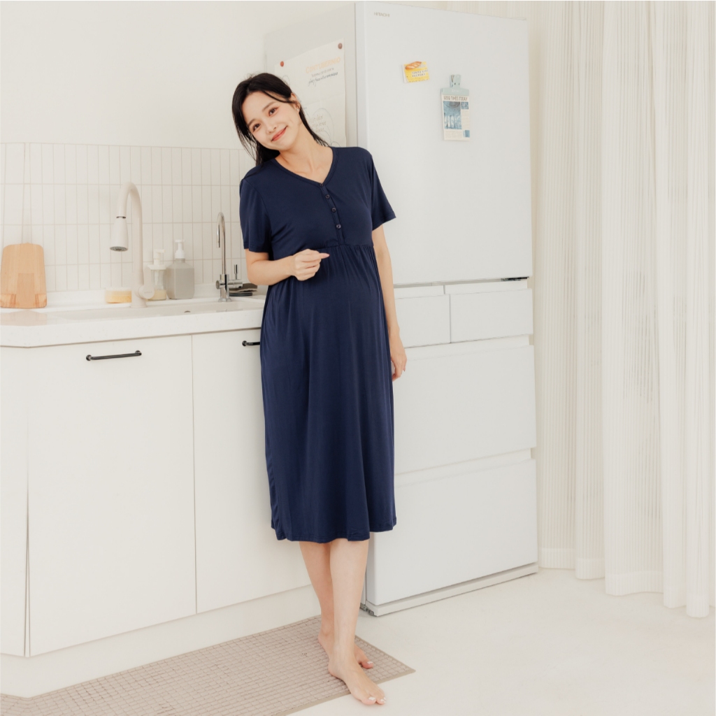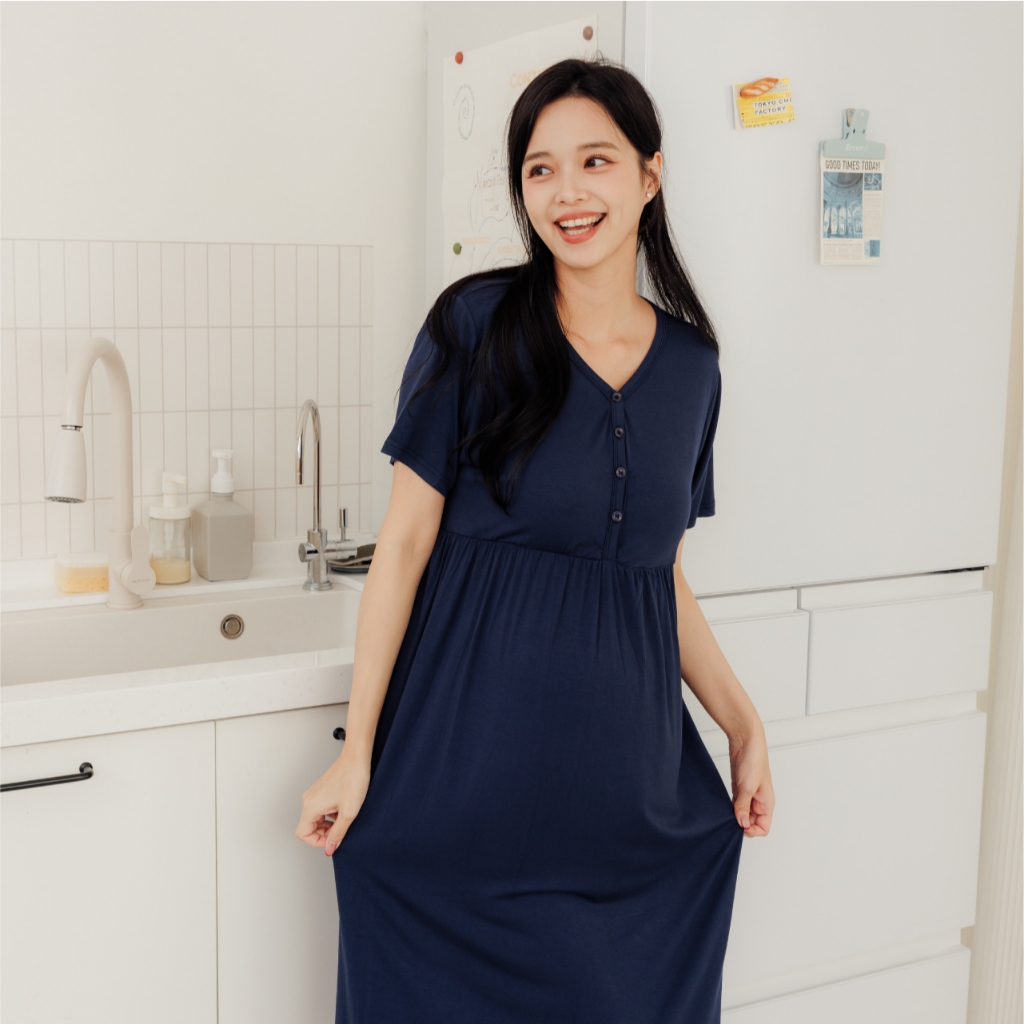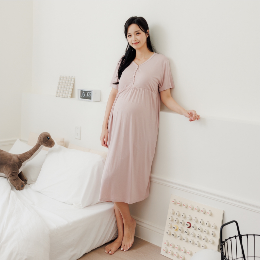 Bra微涼午後莫代爾居家洋裝 M~L 孕婦裝 居家洋 哺乳衣 月子服 孕婦裝 短袖 [A1977]灰,M|灰,L|水藍,M|水藍,L|粉,M|粉,L|可可,M|可可,L|深藍,M|深藍,LMaternity DressesMamamia孕婦裝