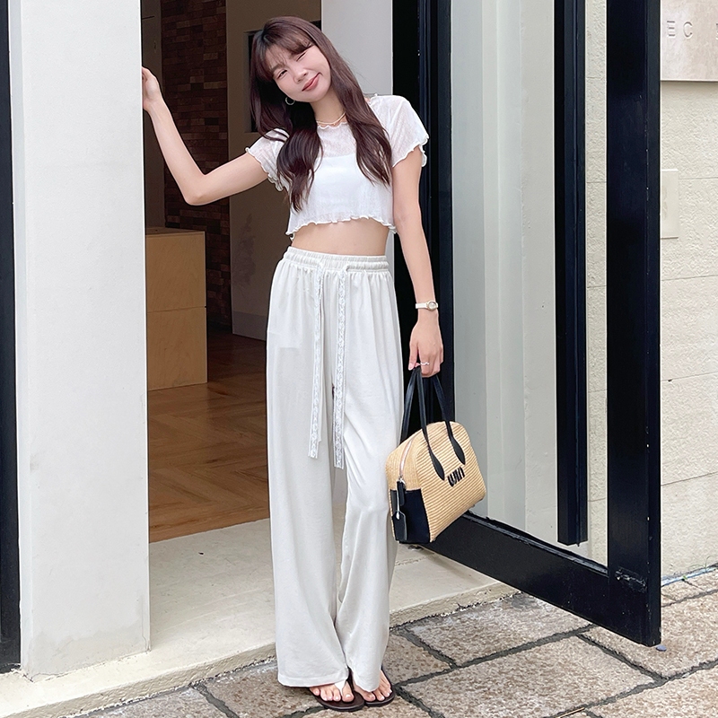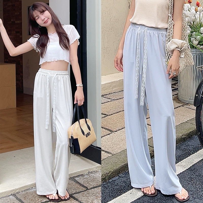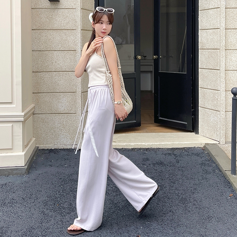 【HARPER】蕾絲綁帶涼感長褲 | 現貨 長褲 褲子 涼感 蕾絲【PND77321J】杏,F|藍,F|紫,FPantsHARPER