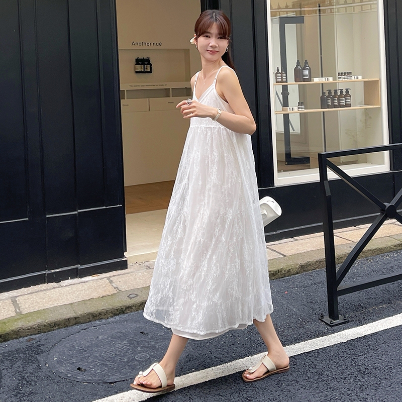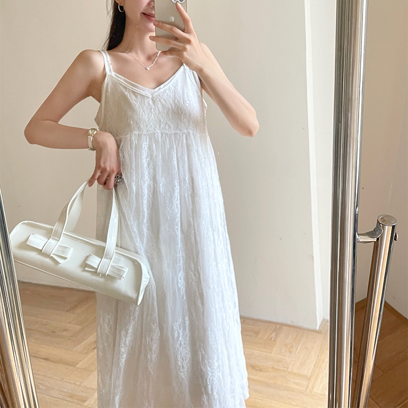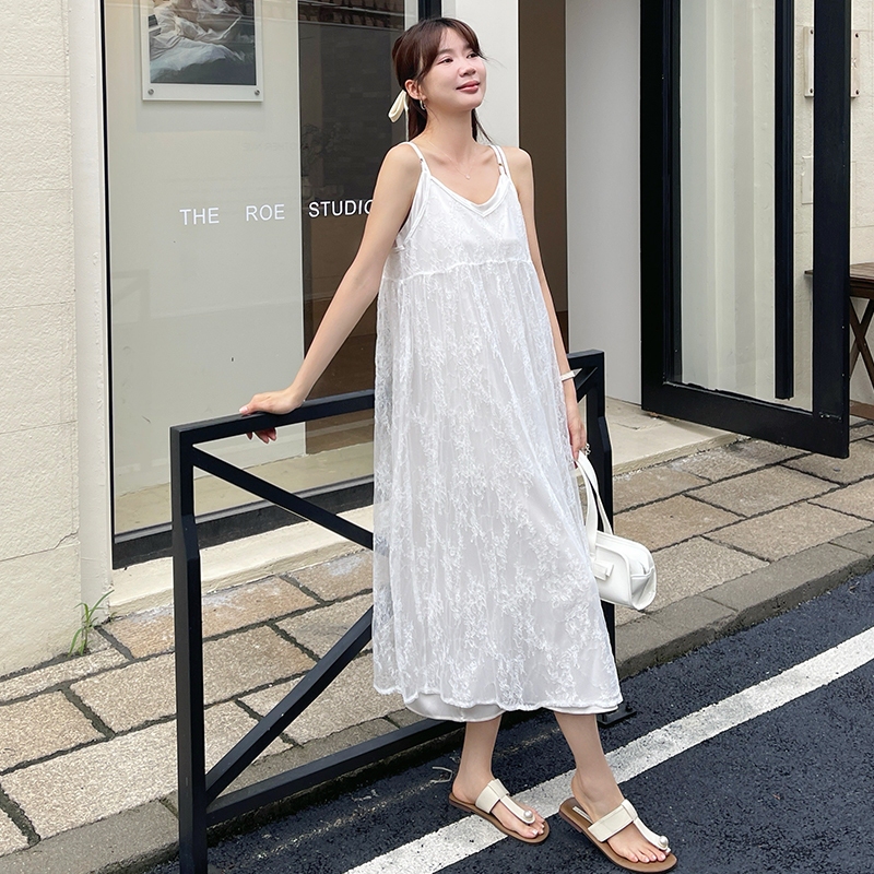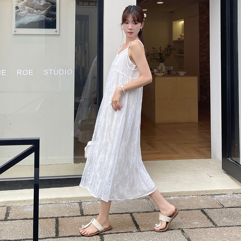 【HARPER】品牌自訂亮片點綴蕾絲外罩洋裝 | 現貨 蕾絲 外搭 罩衫 無袖外搭【DSB49321J】白,S~M|白,L~XLHARPER
