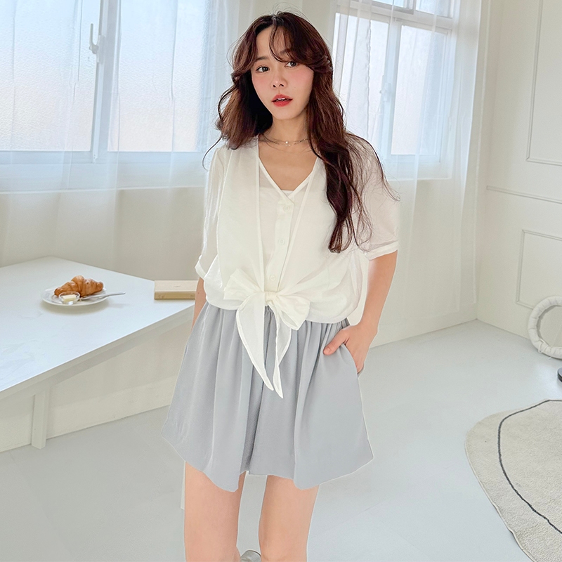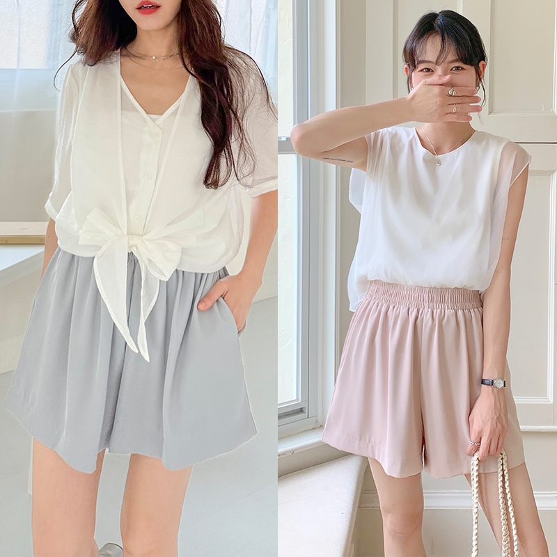 【HARPER】夢幻奶霧雪紡短褲 | 現貨 短褲 褲子 百搭 休閒 顯瘦【PNB98522J】粉,F|黃,F|灰藍,FShortsHARPER