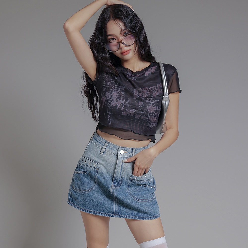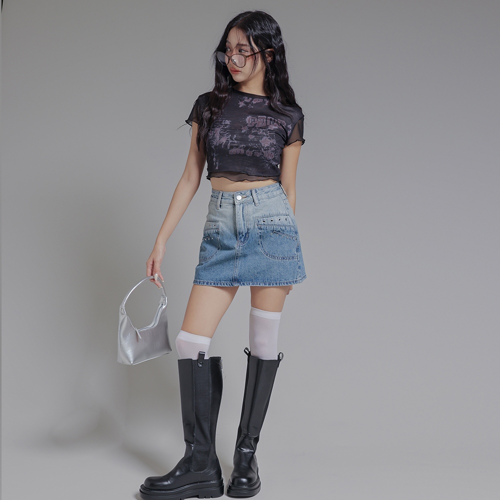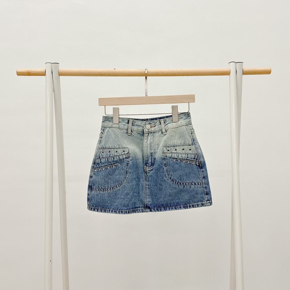 IN SHOP 銀釘設計漸層牛仔短裙-共1色【KT21803】淺懷舊藍,S|淺懷舊藍,M|淺懷舊藍,LIN’ SHOP 旗艦店