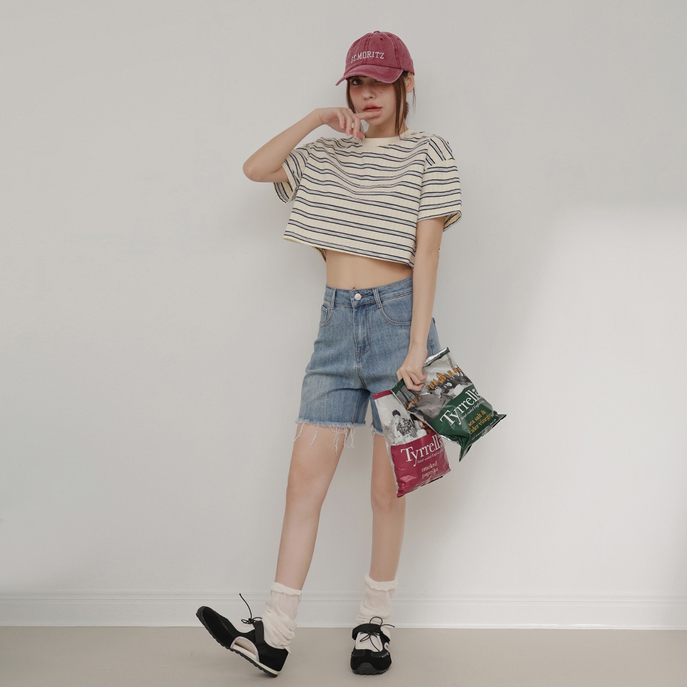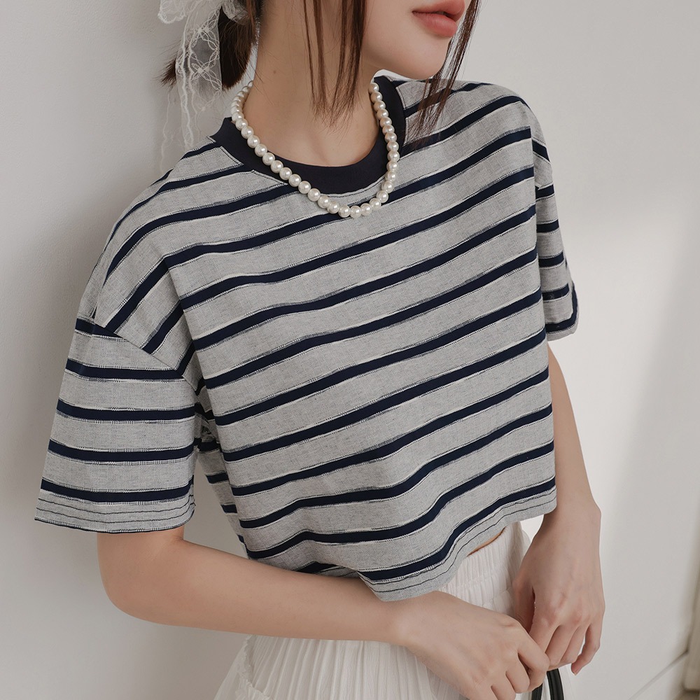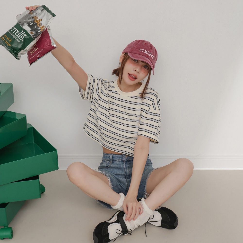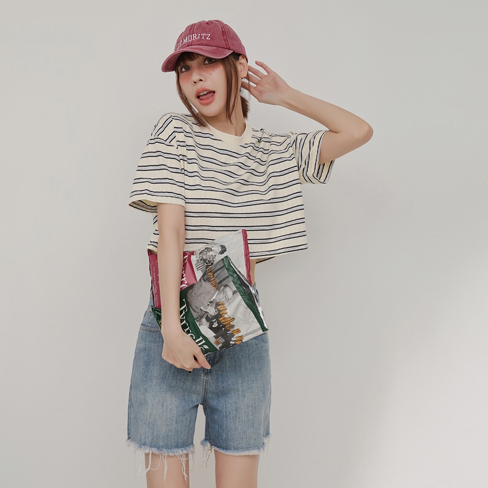 IN SHOP 橫條寬版短T-共2色【KT224574】白|寶藍T-shirtsIN’ SHOP 旗艦店