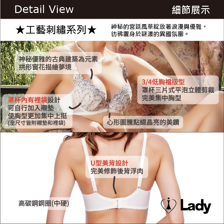 Lady 縱情絕世系列 B-F罩 法式 刺繡 蕾絲 內衣 (璀燦金)70B|70C|70D|70E|70F|75B|75C|75D|75E|75F|80C|80D|80E|80F|85E|85FBrasLady內衣官方直營旗艦店