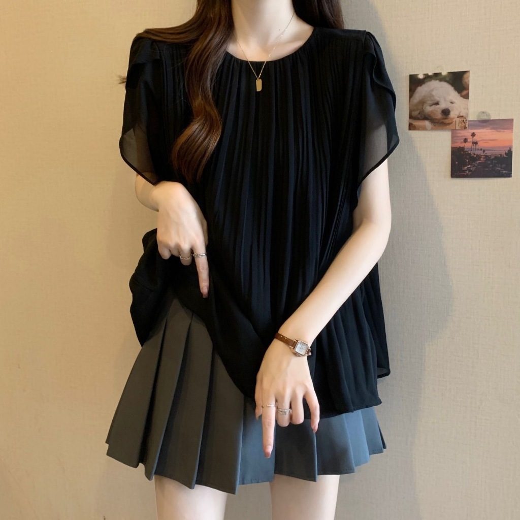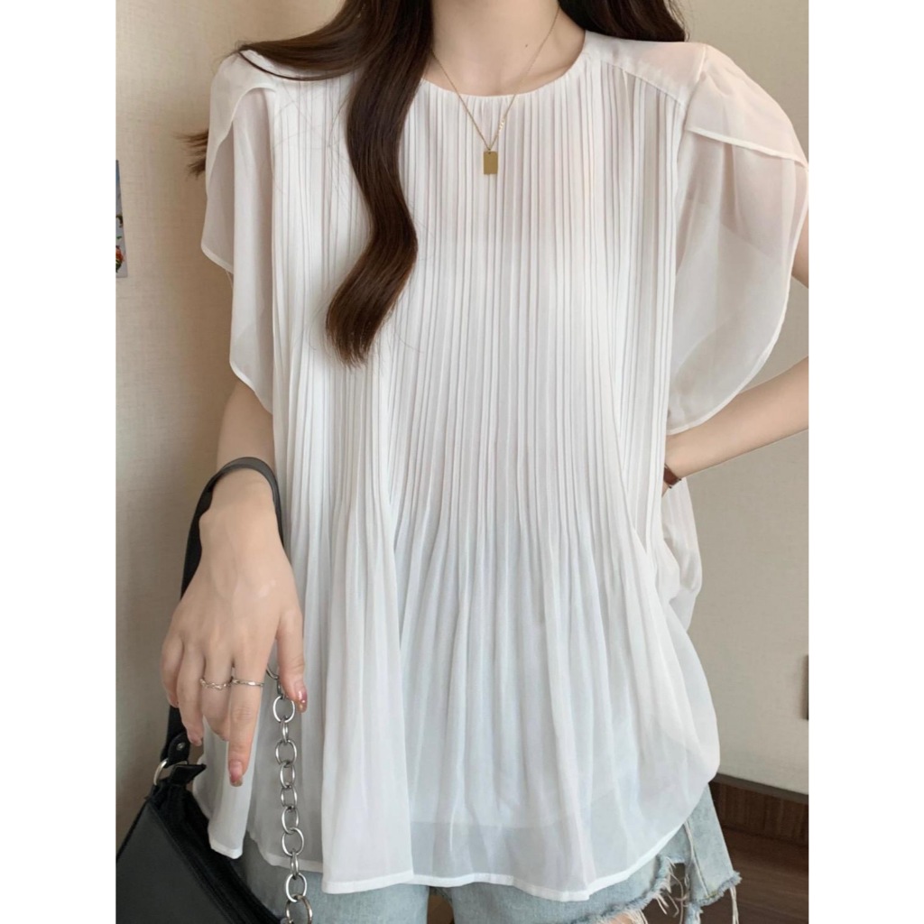 短袖雪紡衫女 短袖上衣 寬鬆上衣 法式顯瘦遮肚燈籠袖氣質襯衫 短袖襯衫 甜美上衣 雪紡上衣 女裝 衣服黑色,M|黑色,L|黑色,XL|黑色,2XL|黑色,3XL|白色,M|白色,L|白色,XL|白色,2XL|白色,3XLShirts & BlousesFUXI 服喜行