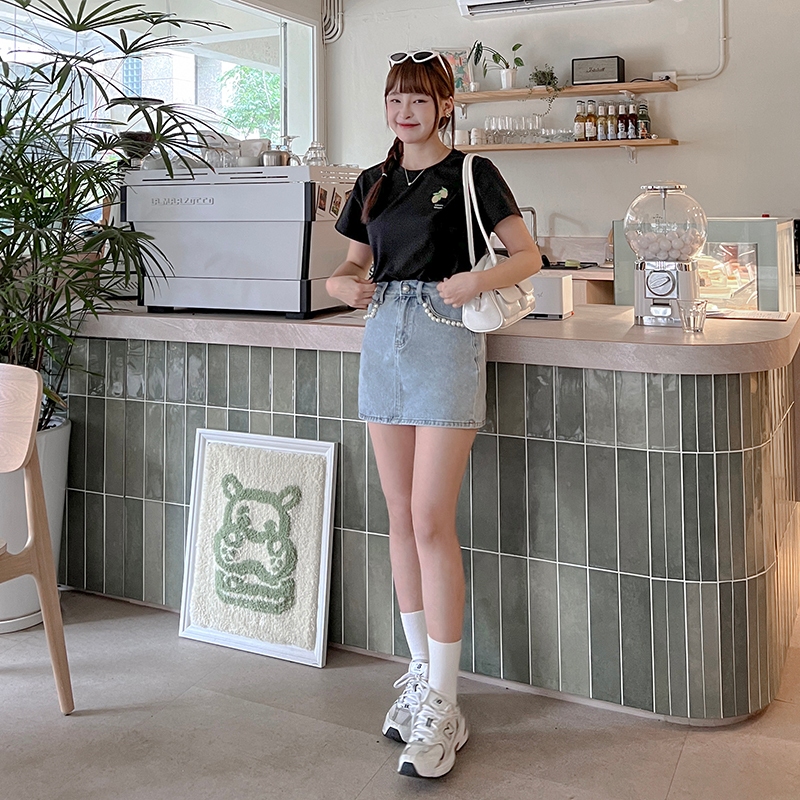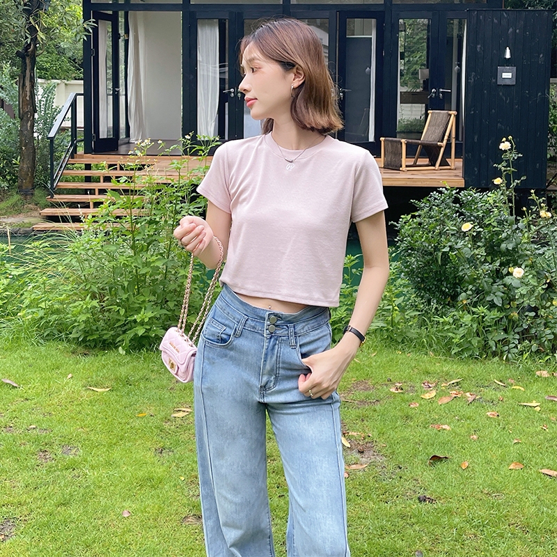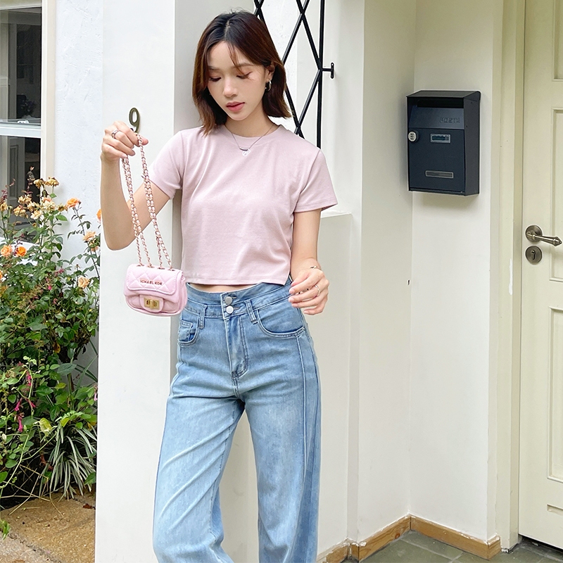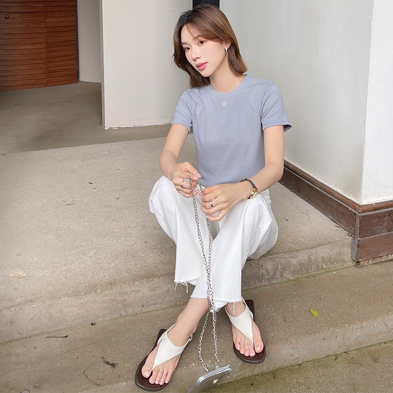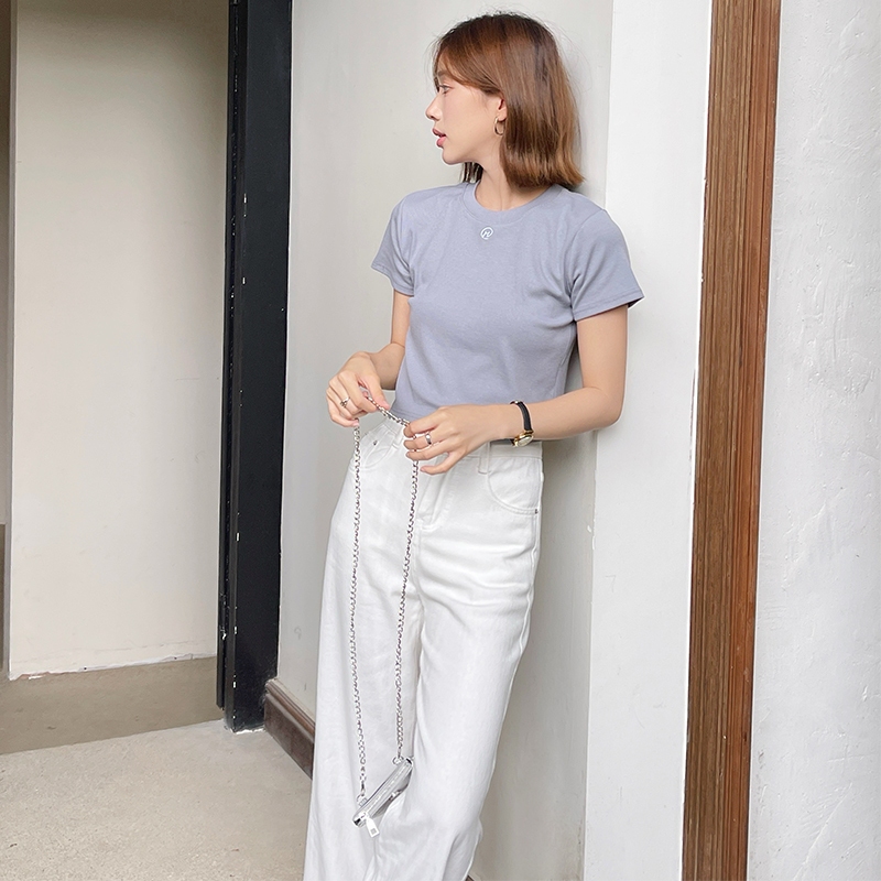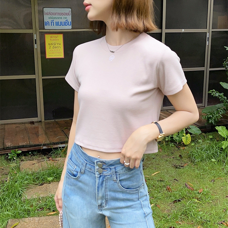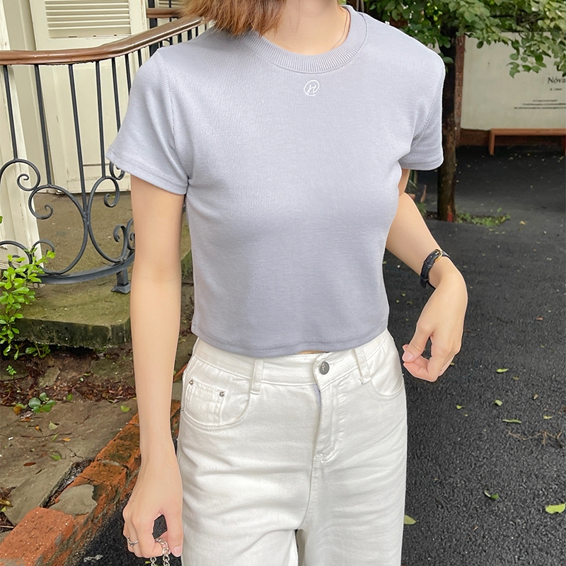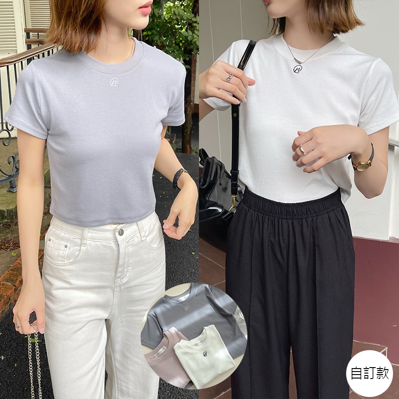 【HARPER】品牌自訂刺繡彈力坑條T恤 |現貨 短袖上衣 短版 T恤【CLF17627J】白,S|白,M|白,L|粉,S|粉,M|粉,L|霧霾藍,S|霧霾藍,M|霧霾藍,LT-shirtsHARPER