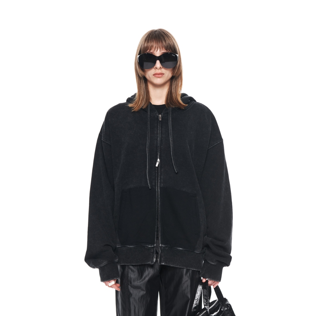 【MATIN KIM】色染工藝LOGO拉鍊外套炭灰,FREE|黑色,FREEJacketsMATIN KIM 官方旗艦店