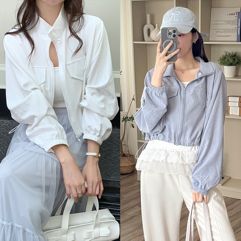 【HARPER】霧面感抽繩襯衫外套 | 現貨 長袖襯衫 短版外套【JTA39716J】白,F|藍,FJacketsHARPER