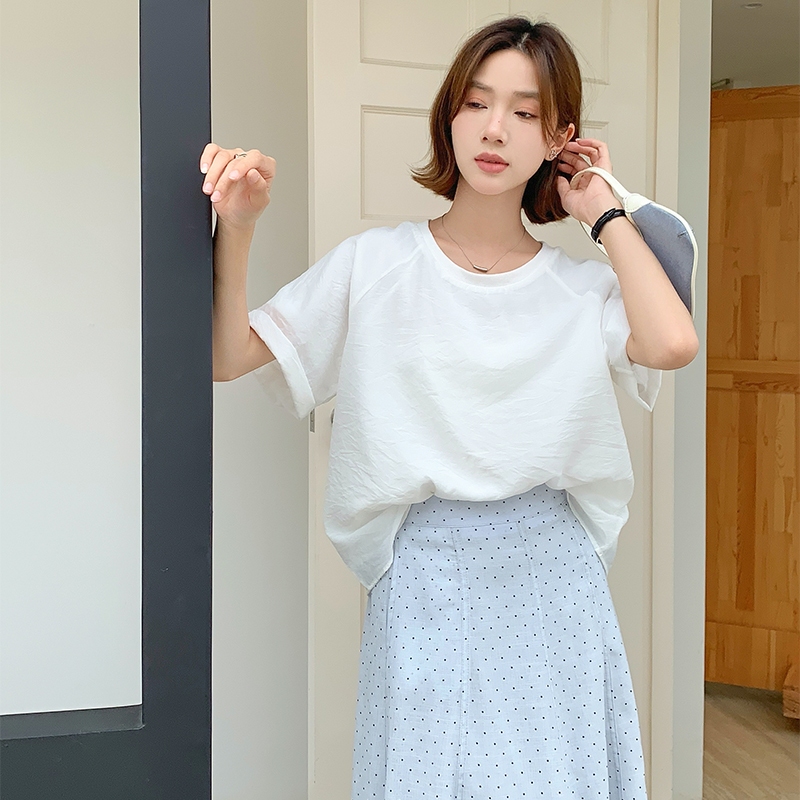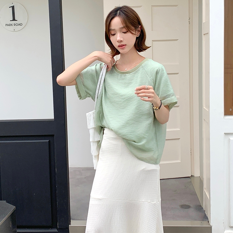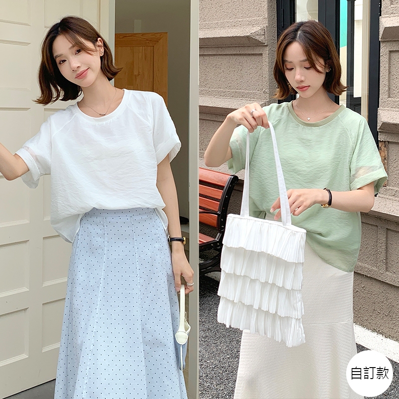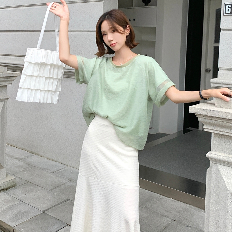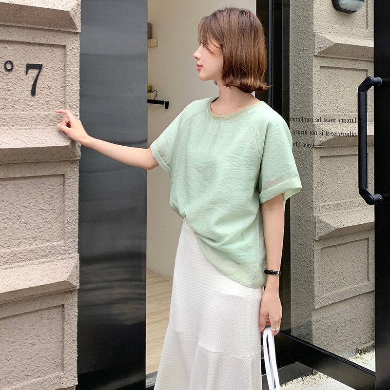 【HARPER】品牌自訂雙層紗透肌感上衣 | 現貨 短袖上衣 透肌【CLB49024J】白,F|綠,FT-shirtsHARPER
