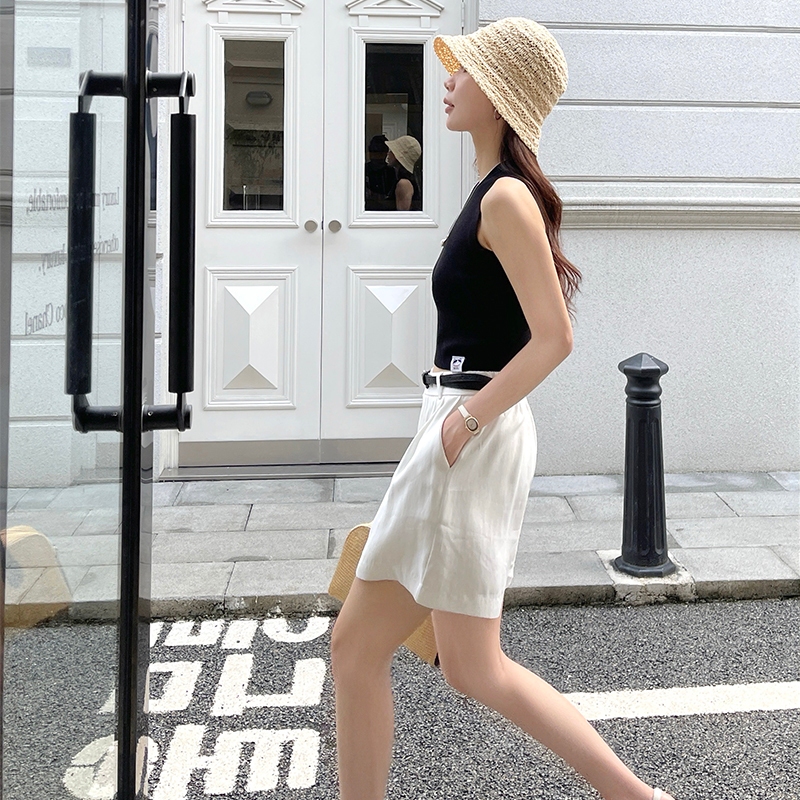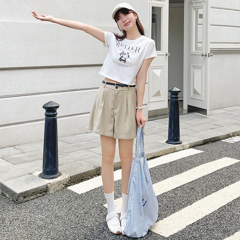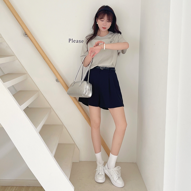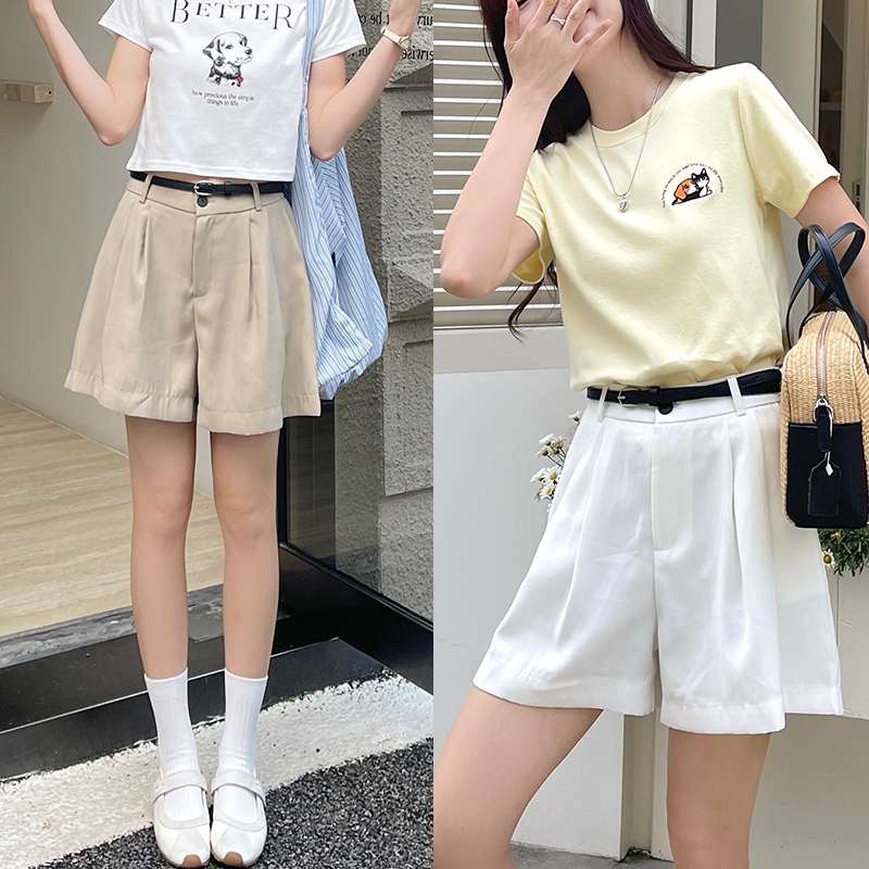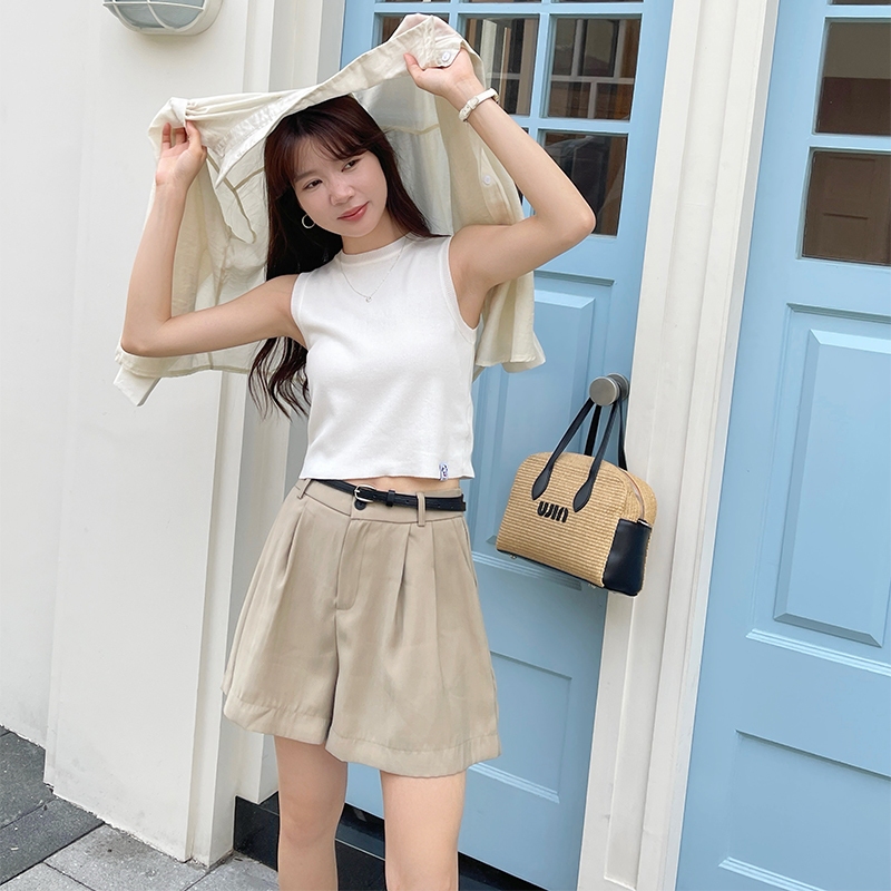 【HARPER】顯瘦質感打褶短褲 附皮帶 | 現貨 短褲 褲子 西裝褲【PND76820J】白,F|卡其,F|黑,FShortsHARPER