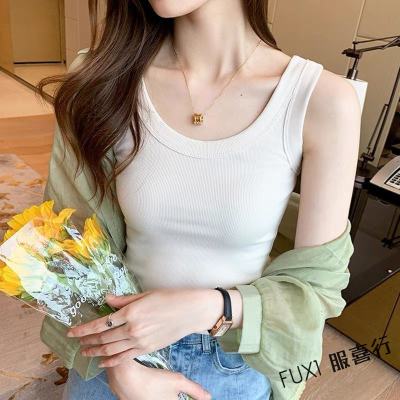 【FUXI】背心女 螺紋無袖上衣 防走光薄款內搭 打底吊帶 夏季 外穿 百搭