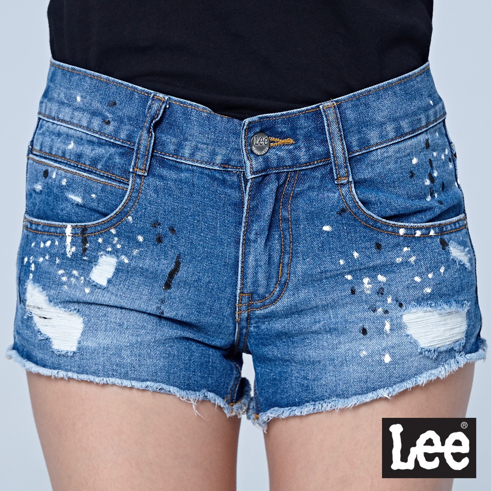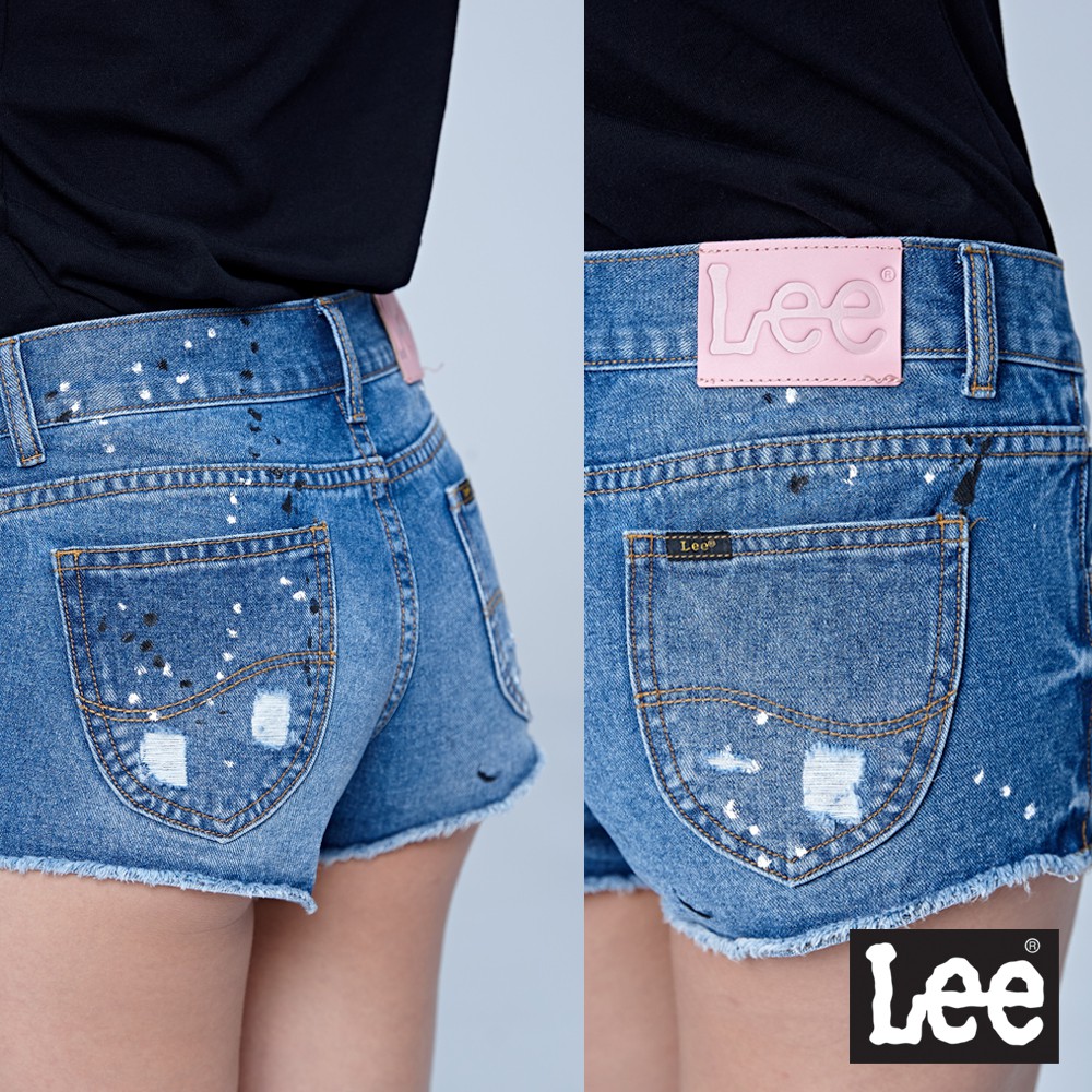 Lee 黑白噴彩激瘦合身牛仔短褲 女 水洗藍 Modern LL180429T06XS|S|M|LLee Jeans 品牌旗艦店