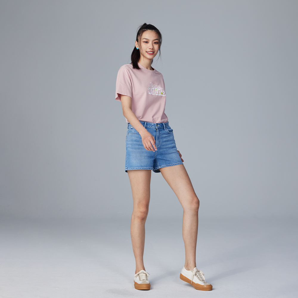 Lee 涼感 彈性牛仔短褲 女 中藍 LB32201525225|26|27|28|29Lee Jeans 品牌旗艦店