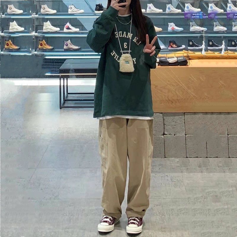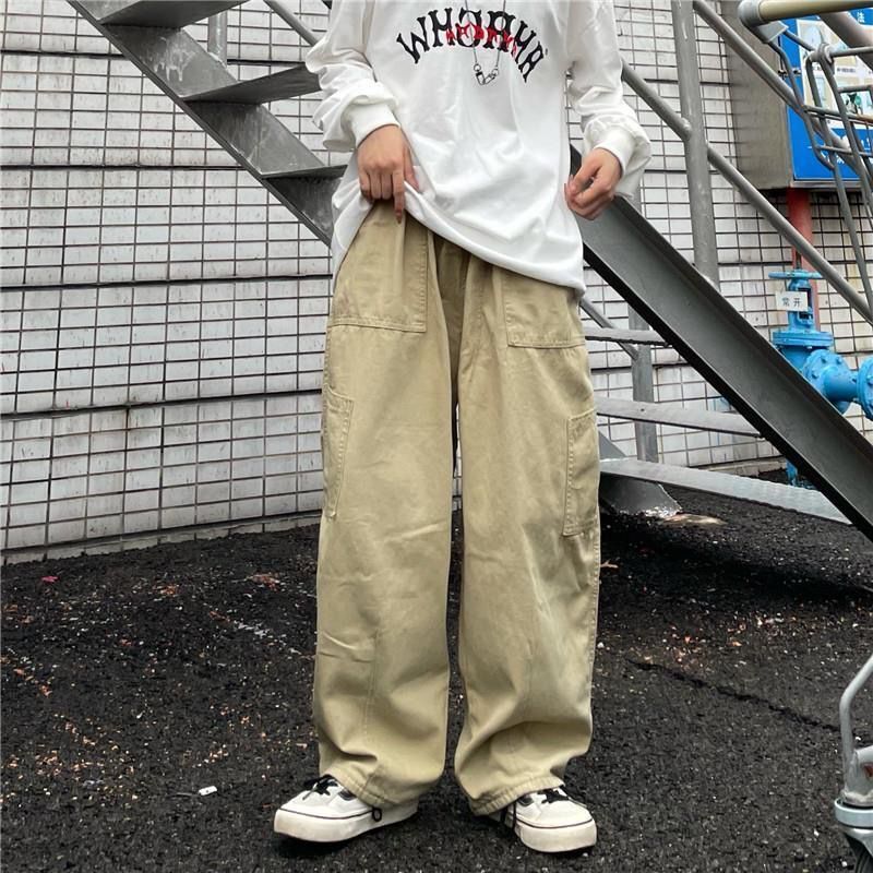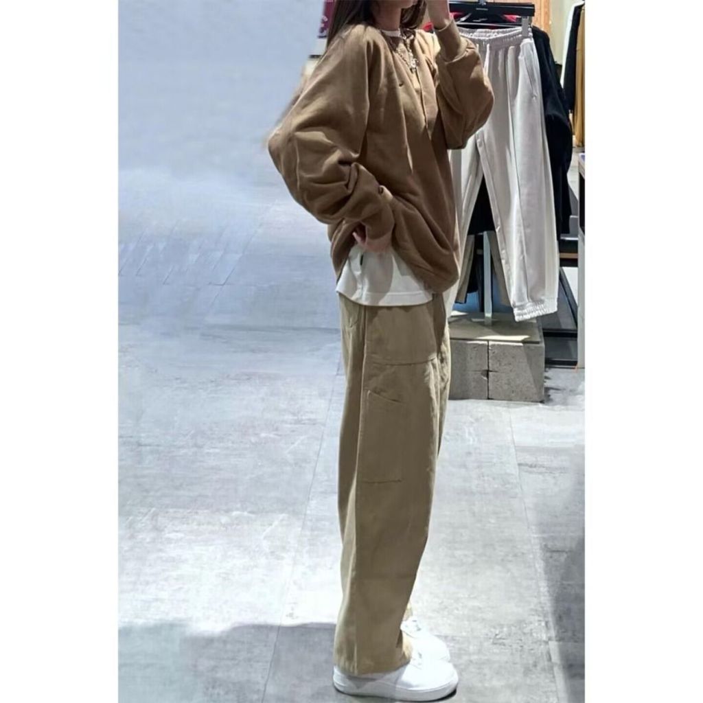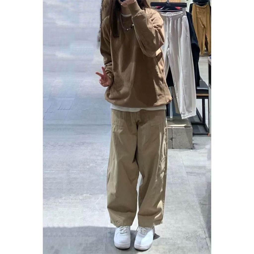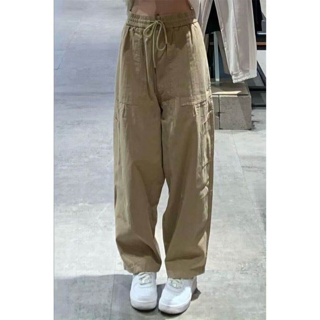 FUXI 工裝褲女 韓版寬鬆直筒闊腿褲 高腰拖地褲 休閒褲子 女生長褲 鬆緊腰抽繩褲卡其色,S|卡其色,M|卡其色,L|卡其色,XL|卡其色,2XL|卡其色,3XL|黑色,S|黑色,M|黑色,L|黑色,XL|黑色,2XL|黑色,3XLPantsFUXI 服喜行