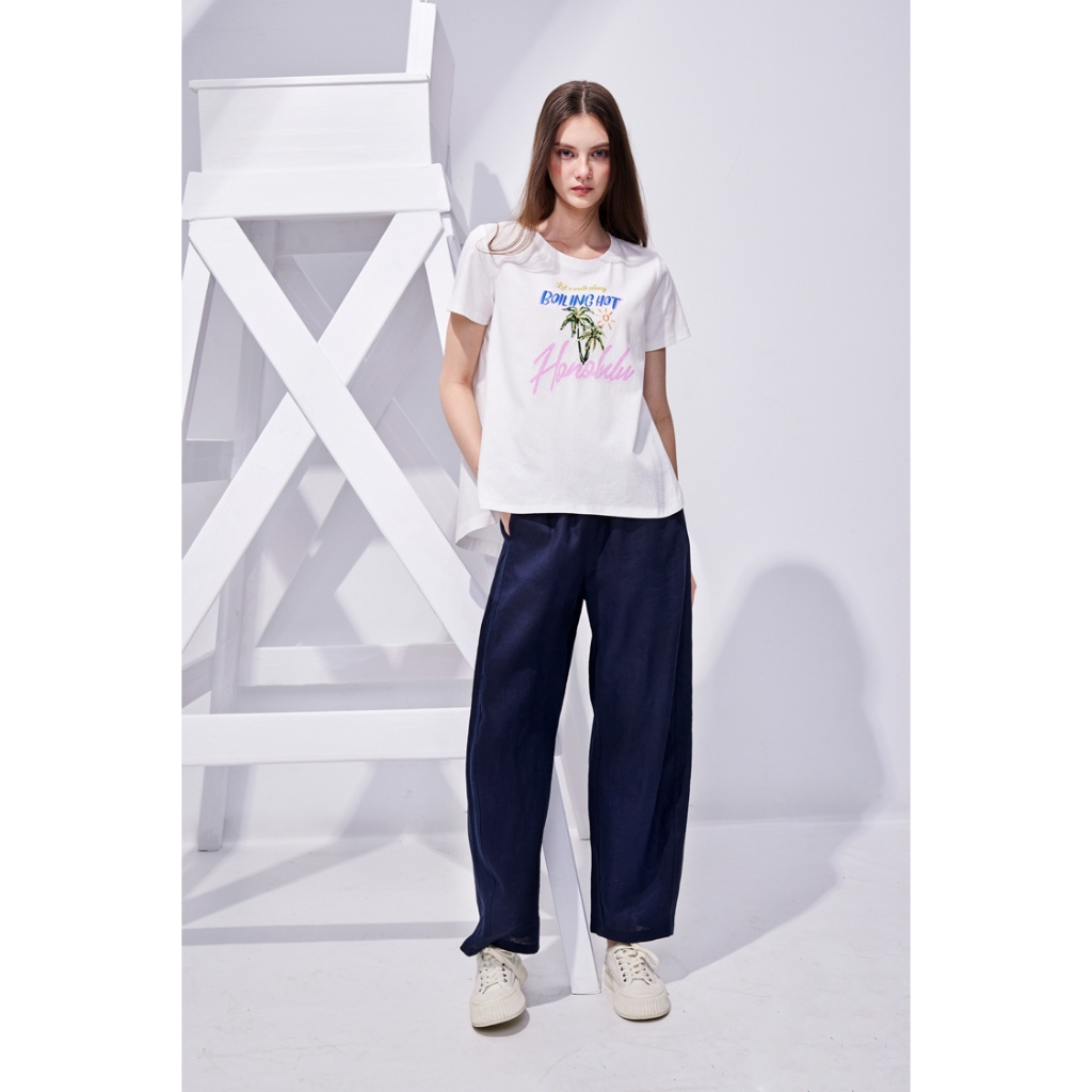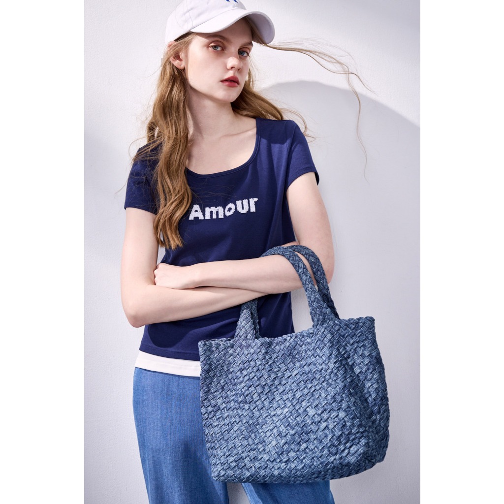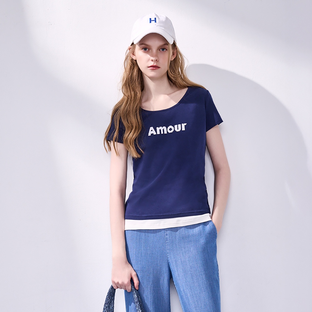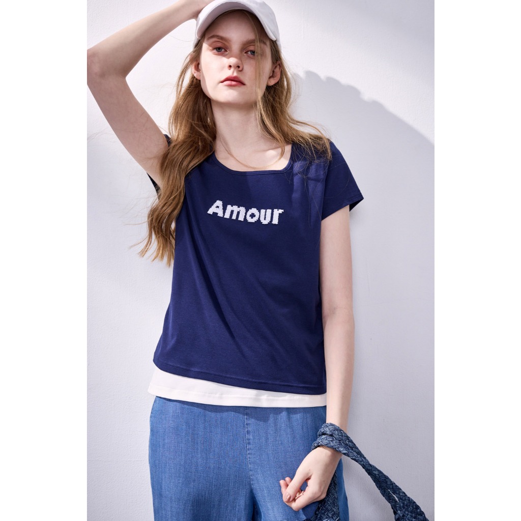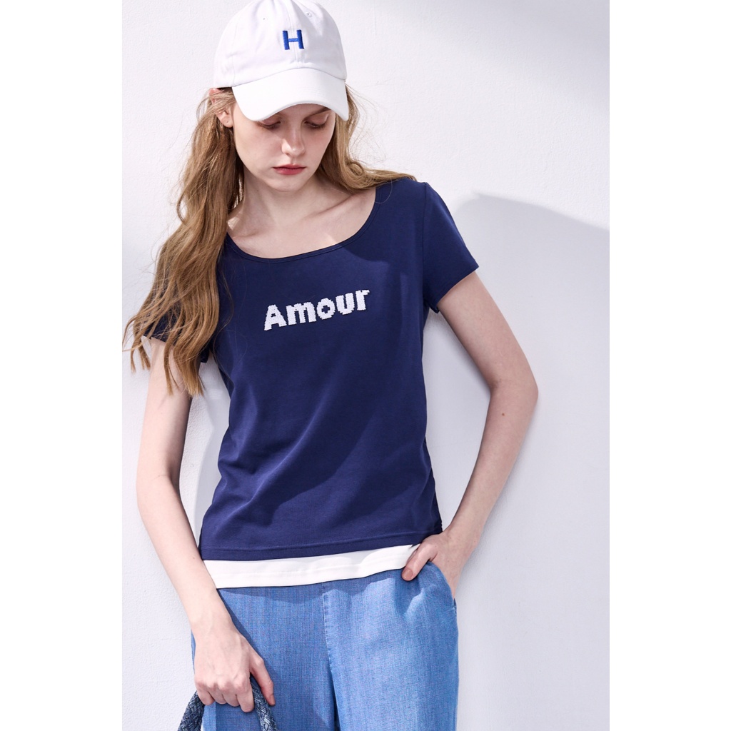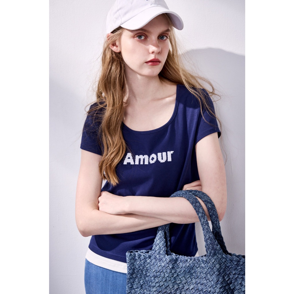 緋霞香頌 ● 刺繡文字上衣深藍,S|深藍,M|深藍,LT-shirtsLe Polka