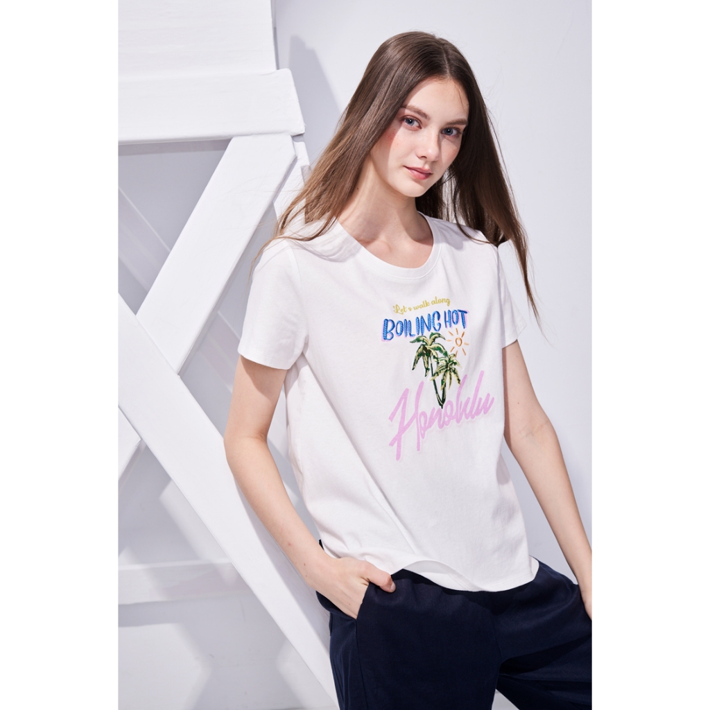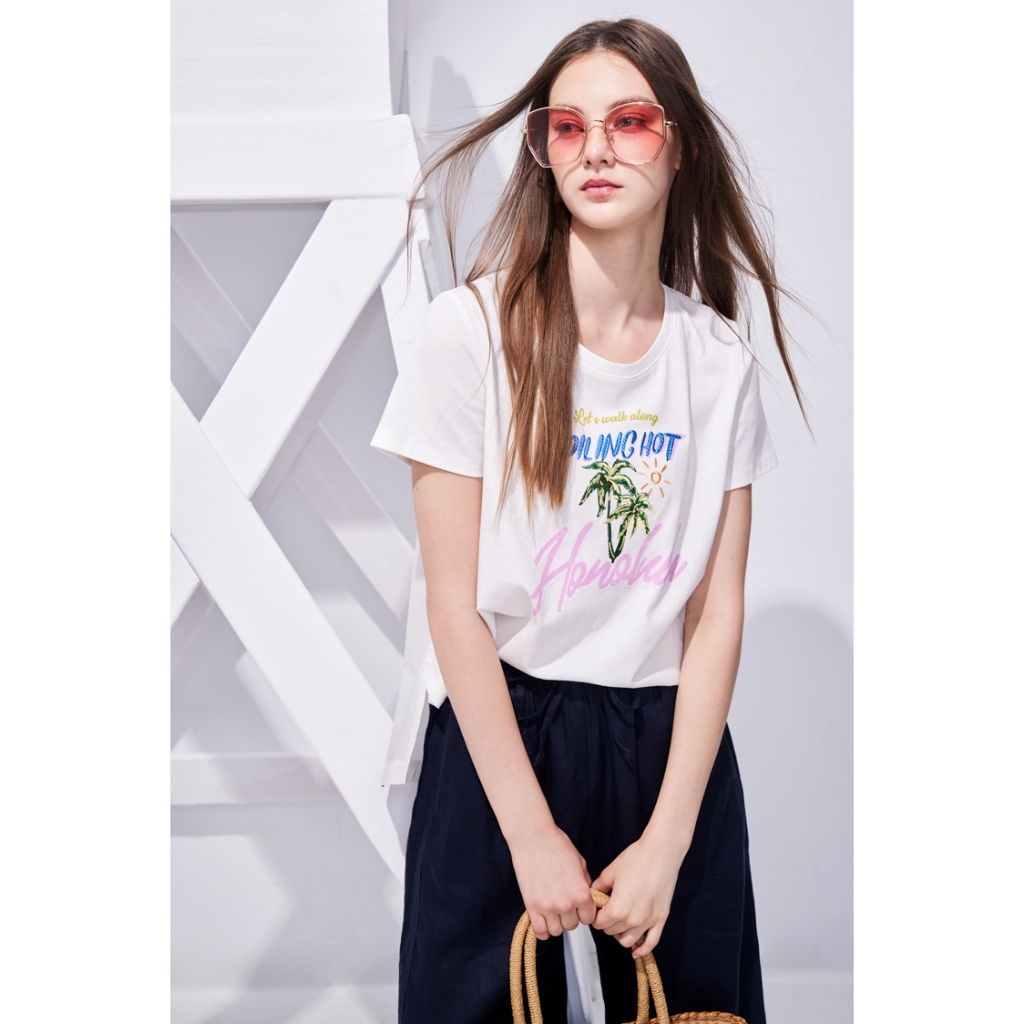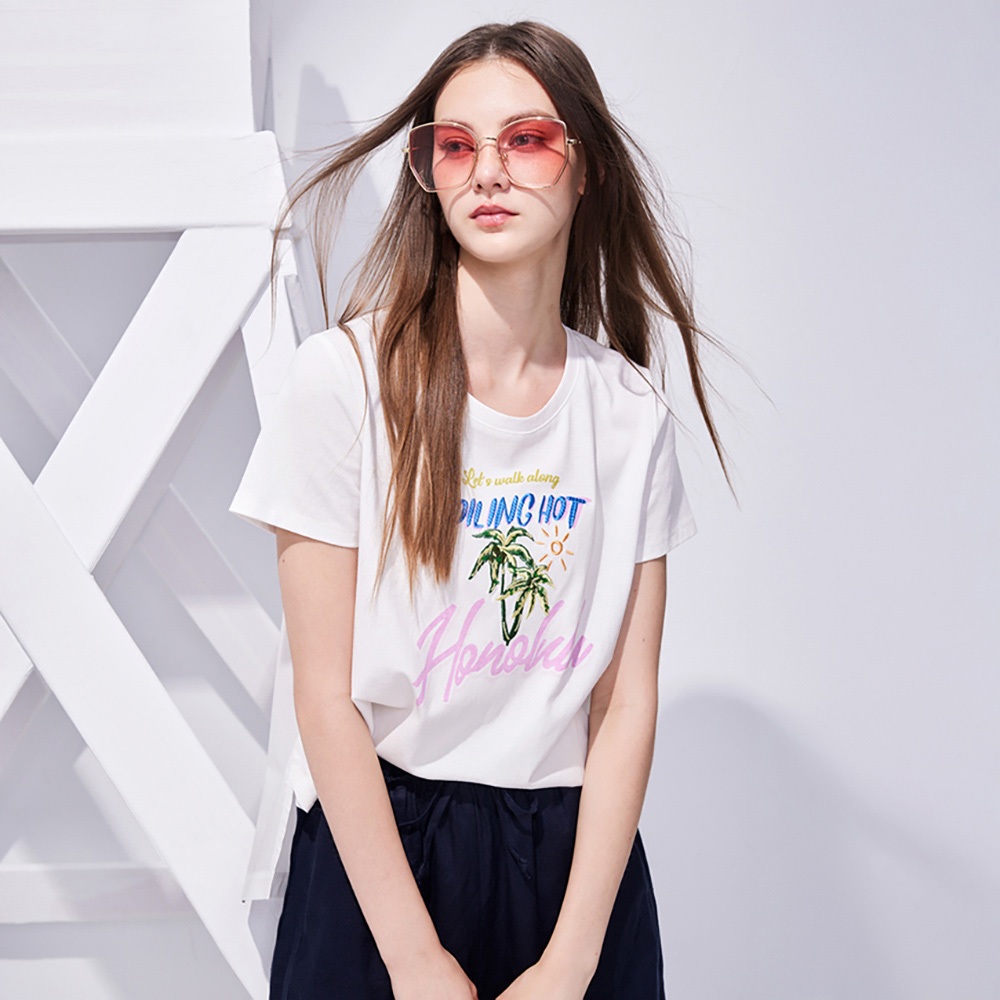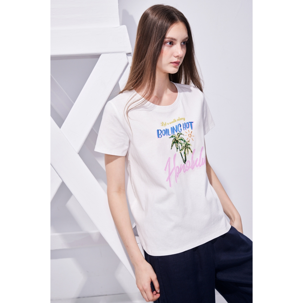海濱渡假 ● 異材質亮片刺繡上衣白,M|白,L|白,ST-shirtsLe Polka