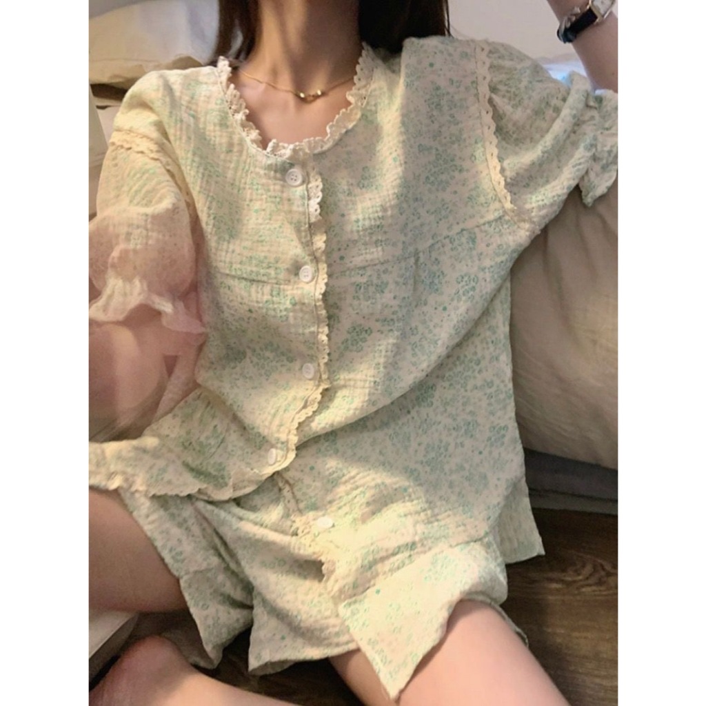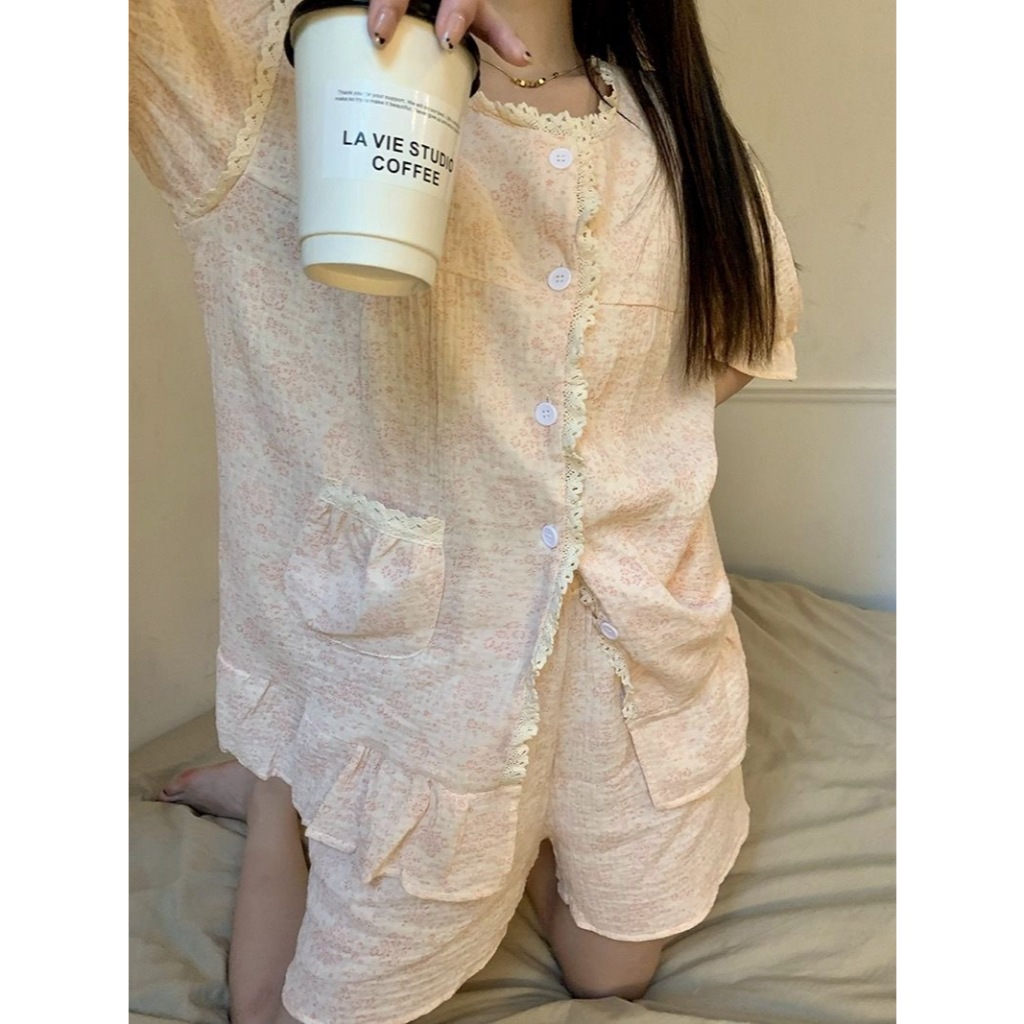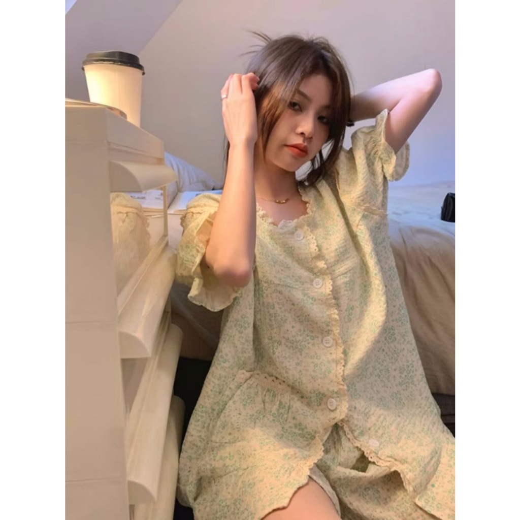 FUXI 短袖睡衣女 甜美可愛小碎花花邊睡衣 成套睡衣 薄款短袖短褲兩件套居家服 夏天家居服綠色碎花,M|綠色碎花,L|綠色碎花,XL|綠色碎花,2XL|粉色碎花,M|粉色碎花,L|粉色碎花,XL|粉色碎花,2XLPajamasFUXI 服喜行