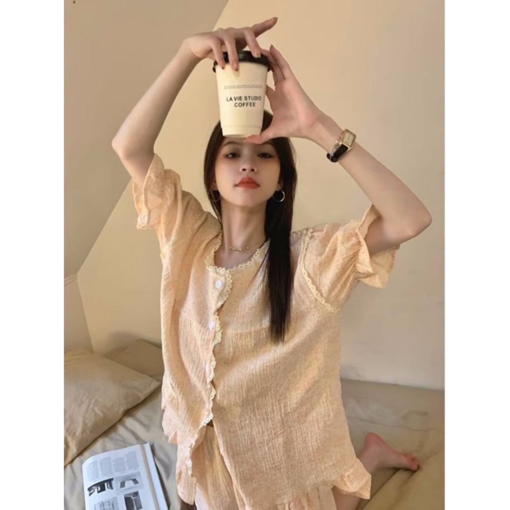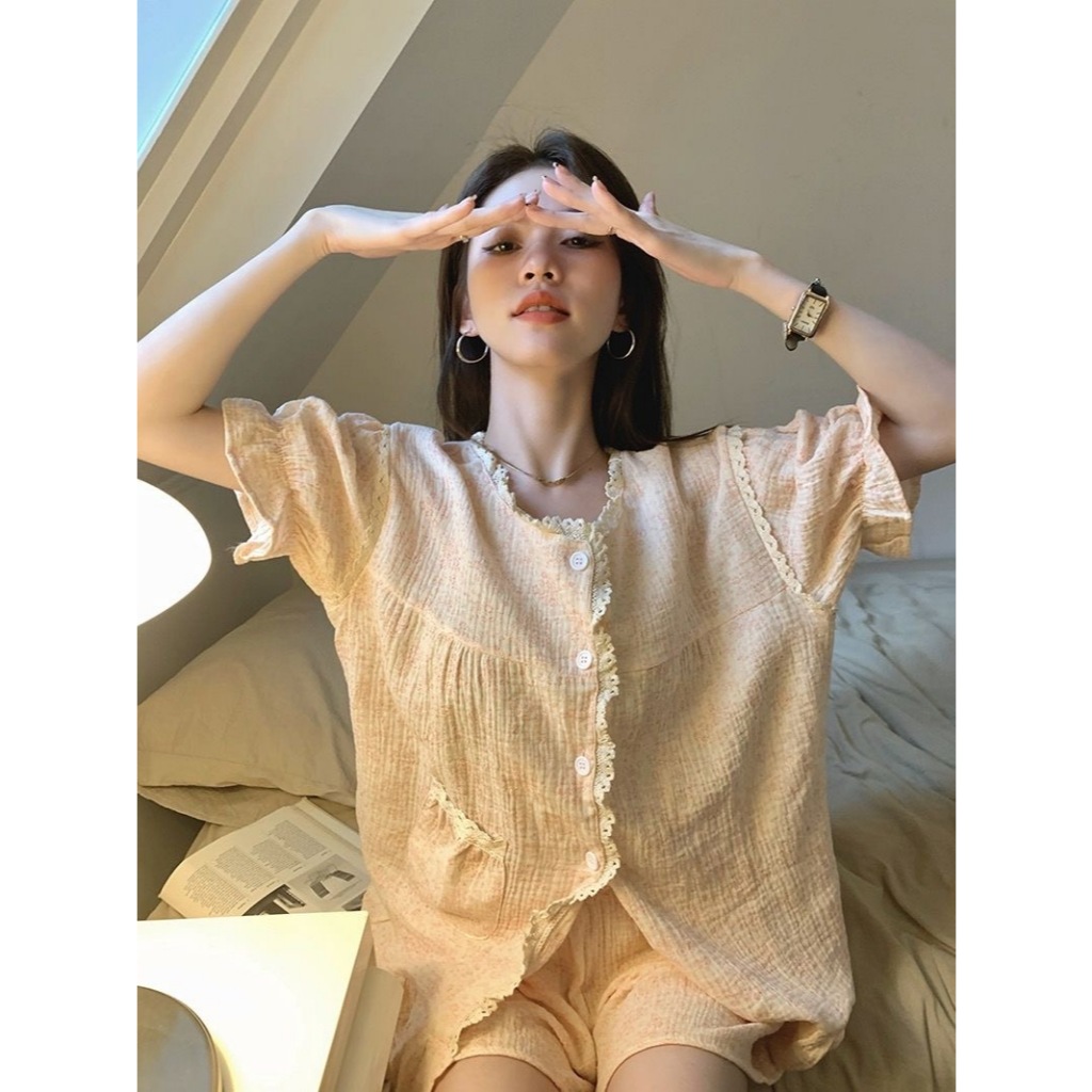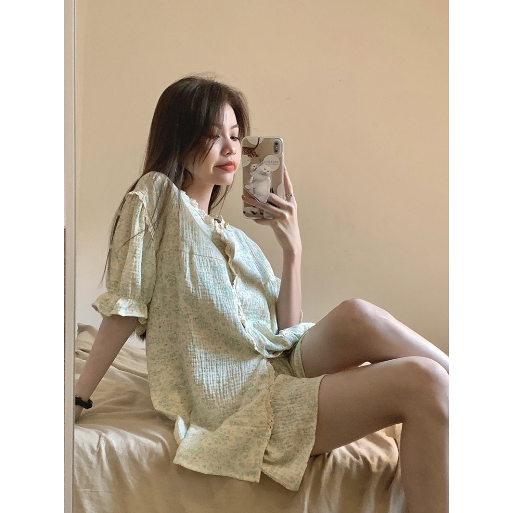 FUXI 短袖睡衣女 甜美可愛小碎花花邊睡衣 成套睡衣 薄款短袖短褲兩件套居家服 夏天家居服綠色碎花,M|綠色碎花,L|綠色碎花,XL|綠色碎花,2XL|粉色碎花,M|粉色碎花,L|粉色碎花,XL|粉色碎花,2XLPajamasFUXI 服喜行