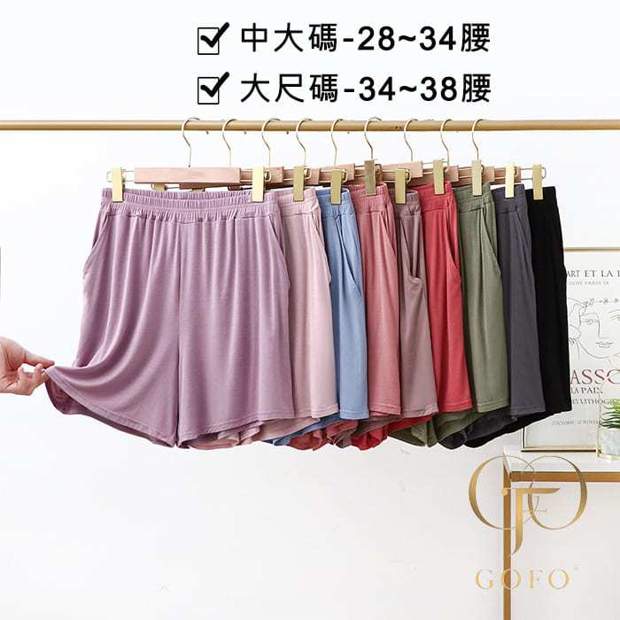 GOFO 大尺碼 中大碼 韓系穿搭 輕薄寬鬆 舒適涼感莫代爾 休閒褲 寬褲 高腰顯瘦 夏季服飾 居家睡褲 女生 熱褲女裝黑色,中大碼(28~34腰)|黑色,大尺碼(34~38腰)|深灰,中大碼(28~34腰)|深灰,大尺碼(34~38腰)|綠色,中大碼(28~34腰)|綠色,大尺碼(34~38腰)|粉色,中大碼(28~34腰)|粉色,大尺碼(34~38腰)|紫色,中大碼(28~34腰)|紫色,大尺碼(34~38腰)|卡其,中大碼(28~34腰)|卡其,大尺碼(34~38腰)ShortsGOFO 台灣賣家 台灣出貨 台灣現貨