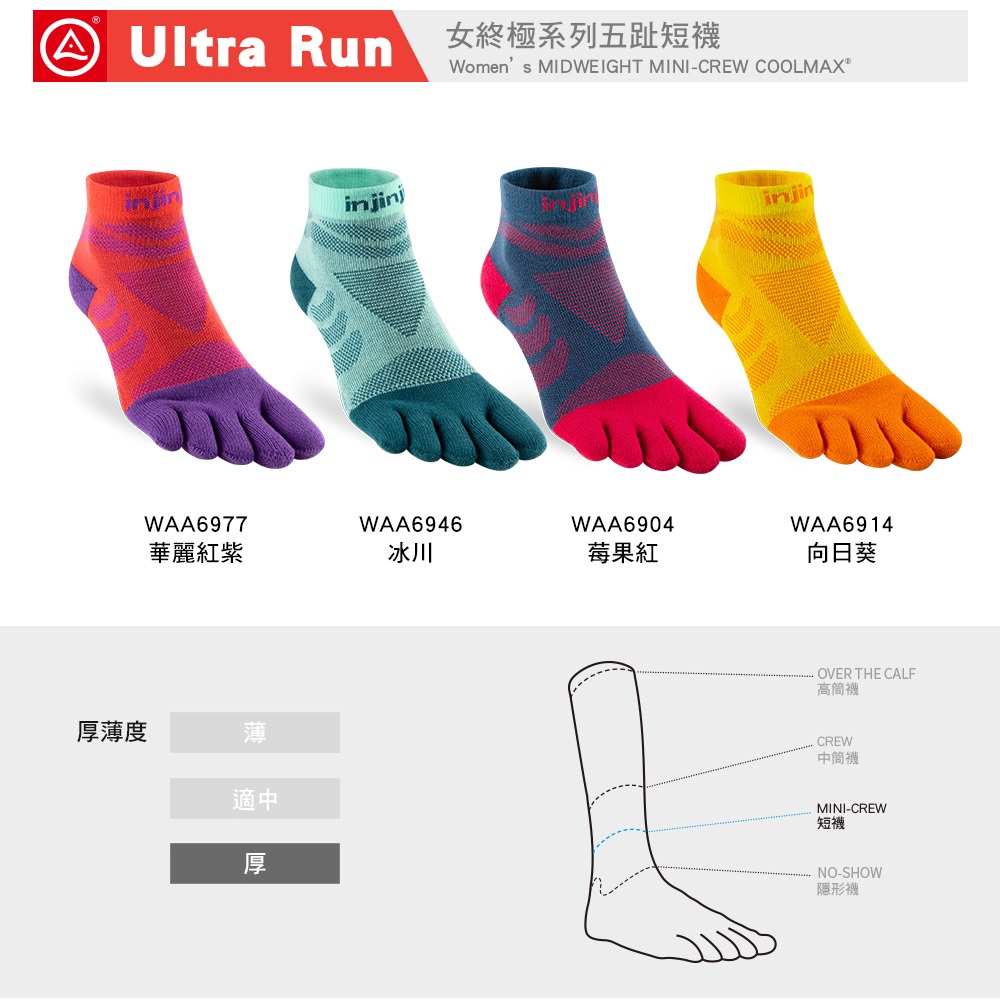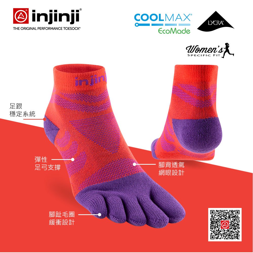 【injinji】女 Ultra Run終極系列五趾短襪(華麗紅紫)-WAA69|吸濕排汗 推薦女生 避震緩衝 馬拉松XSS|MLSocksGOHIKING戶外用品專賣店