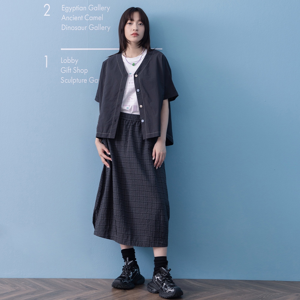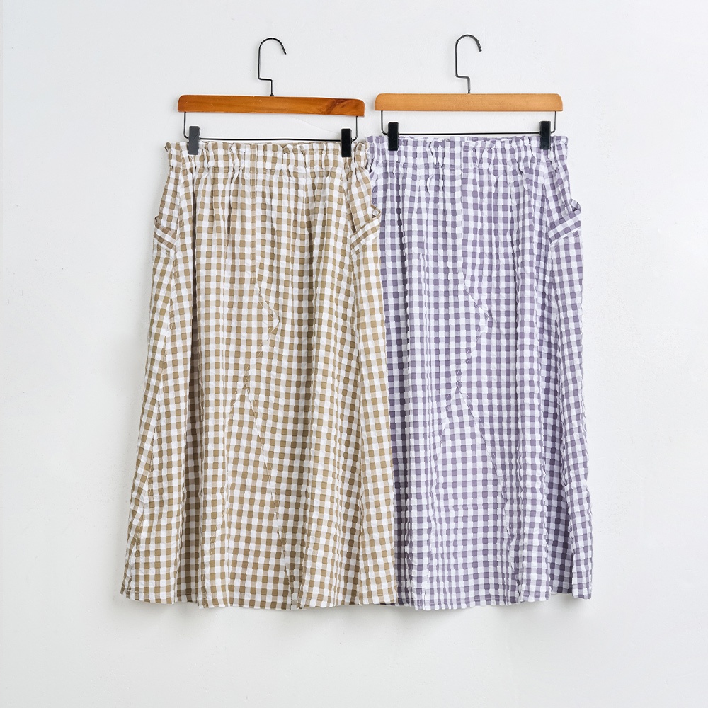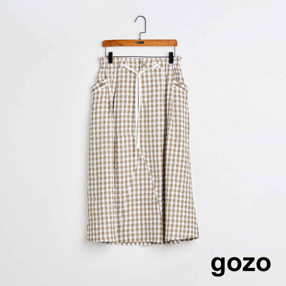 【gozo】➤格紋綁帶鬆緊中長裙(淺咖/淺紫_F) | 女裝 顯瘦 休閒淺咖,F|淺紫,Fgozo 品牌旗艦店