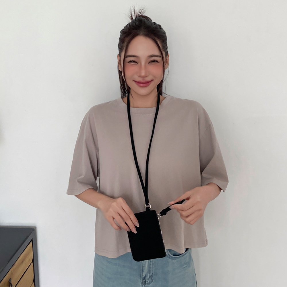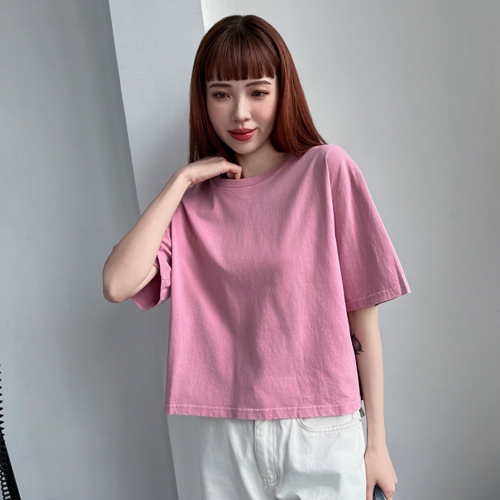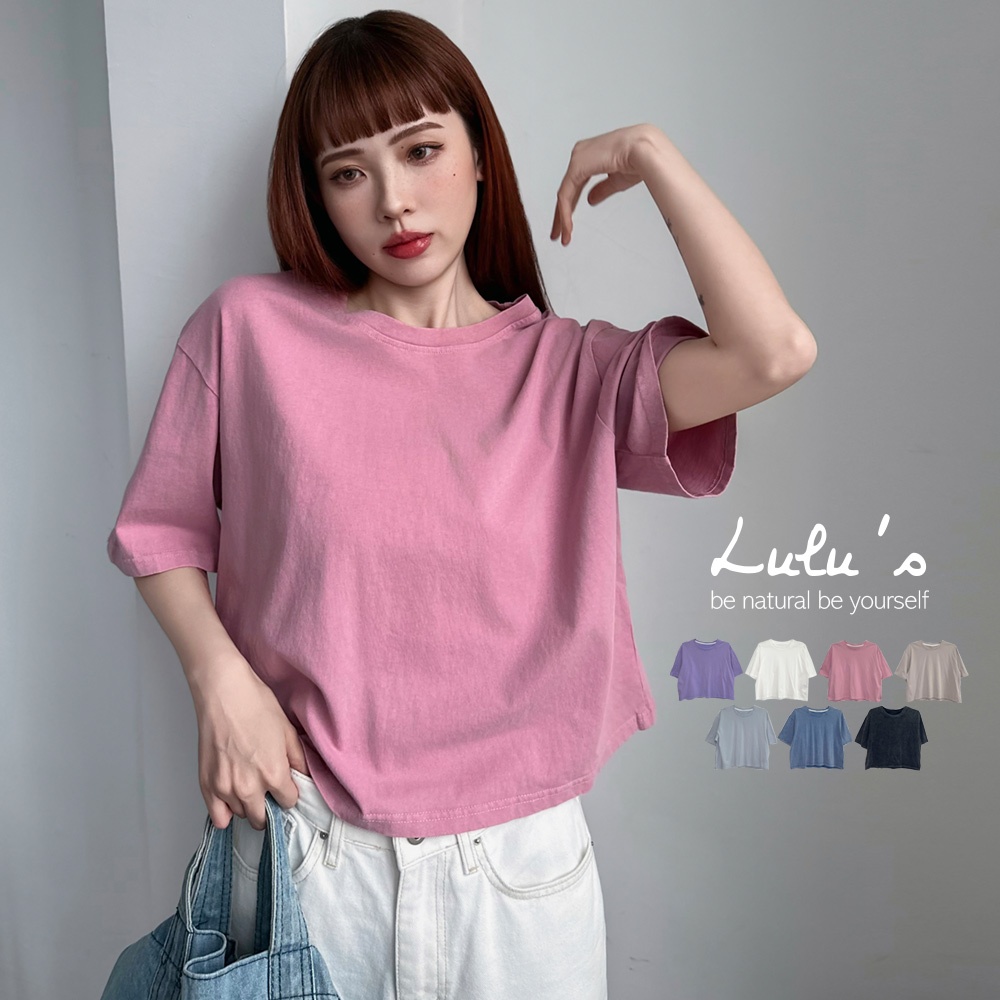LULUS/百搭水洗寬鬆短版上衣7色【A01250472】250618灰杏|粉|深藍|淺藍|紫|黑|白T-shirtsLULUS