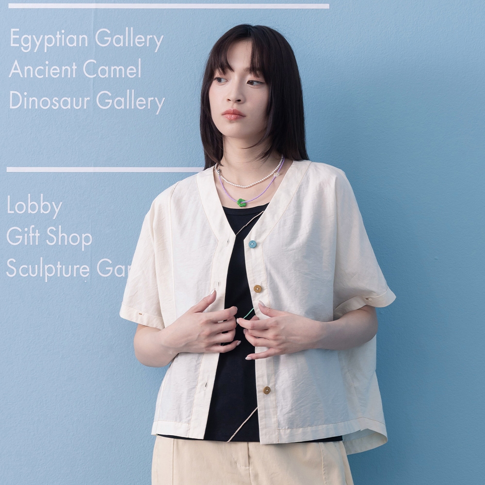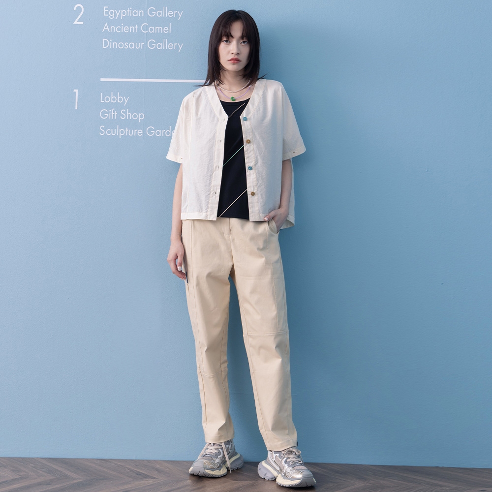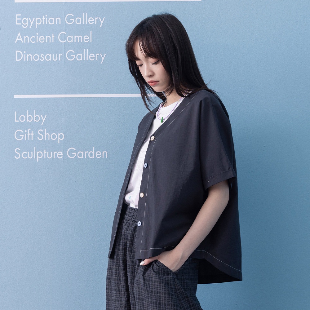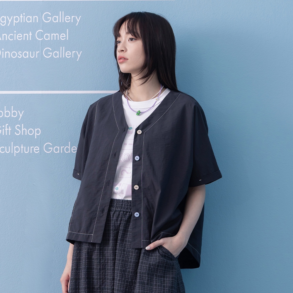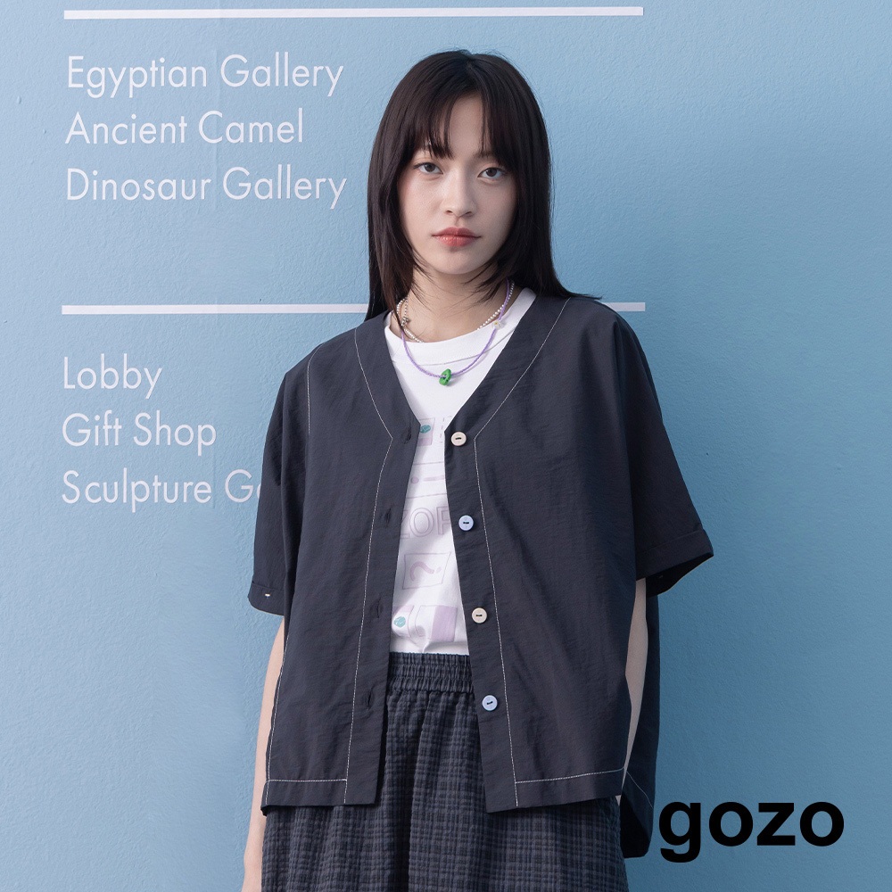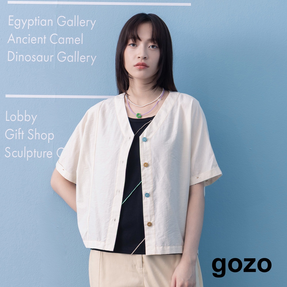 【gozo】➤配色鈕扣開襟連袖上衣(米白/黑色_F) | 女裝 圓領 百搭米色,F|黑色,FShirts & Blousesgozo 品牌旗艦店