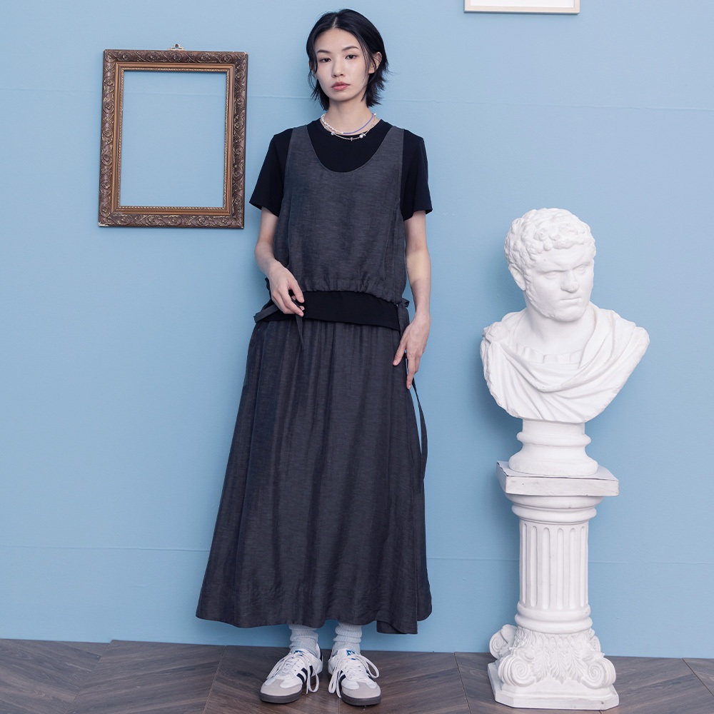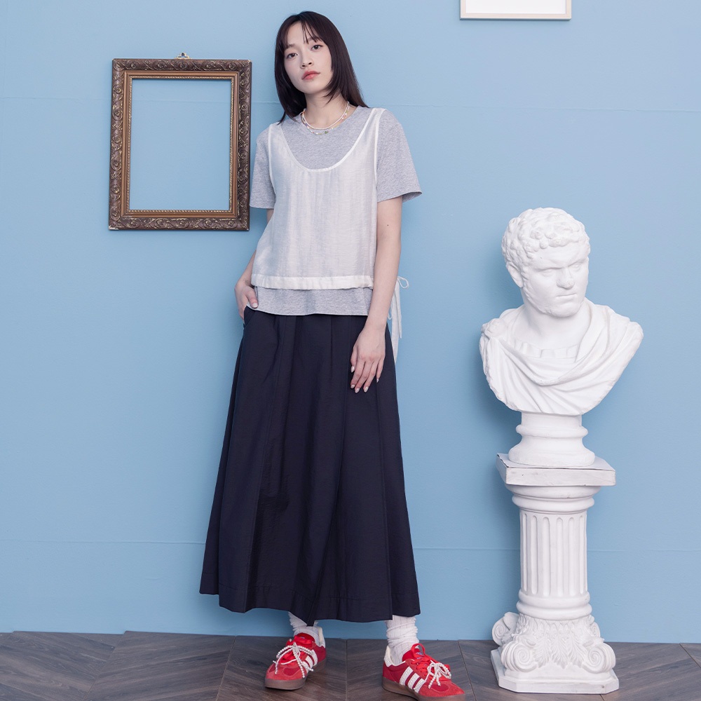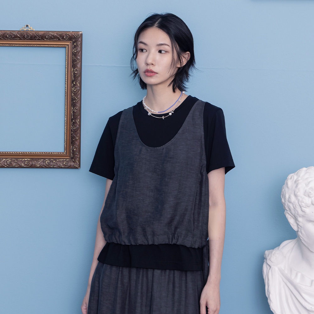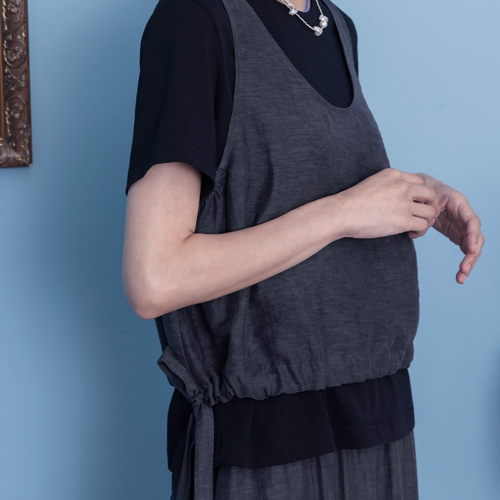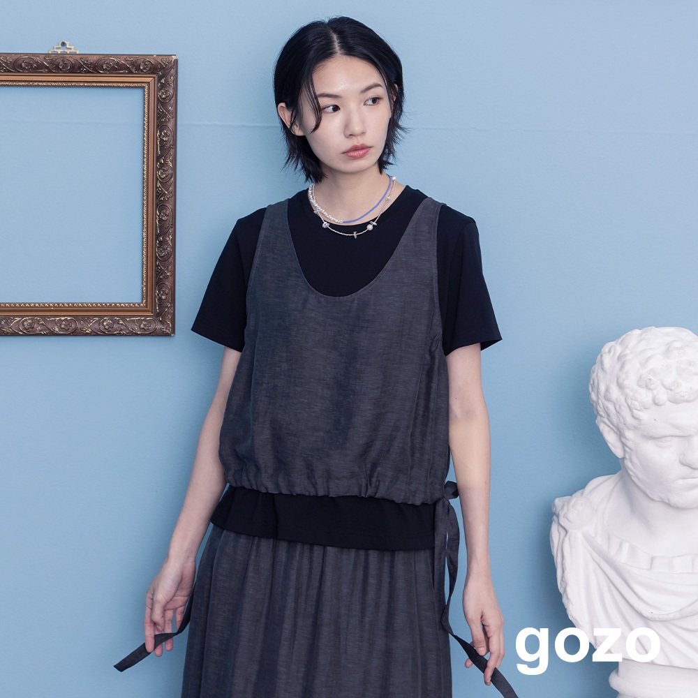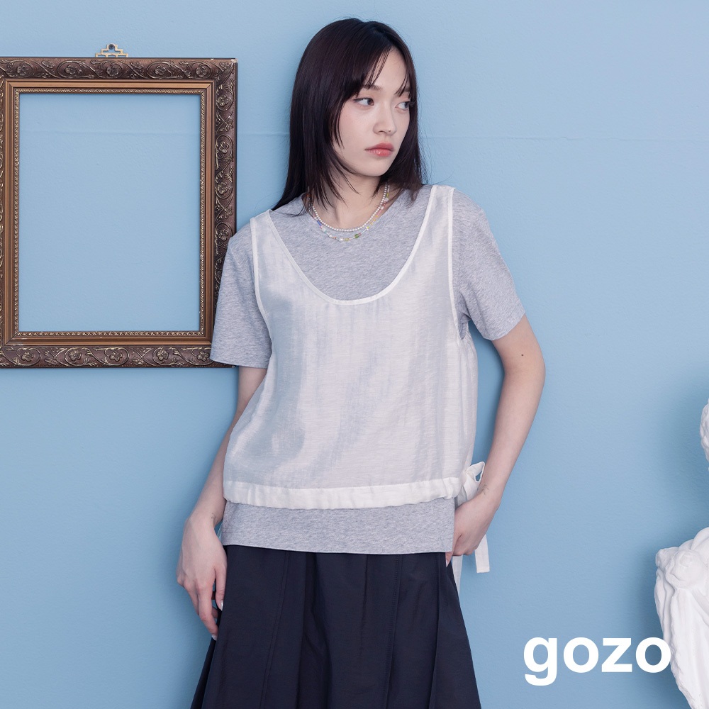 【gozo】涼感天絲下擺抽繩背心兩件式T恤(白色/深灰_F) | 女裝 圓領 百搭白色,F|深灰,FT-shirtsgozo 品牌旗艦店
