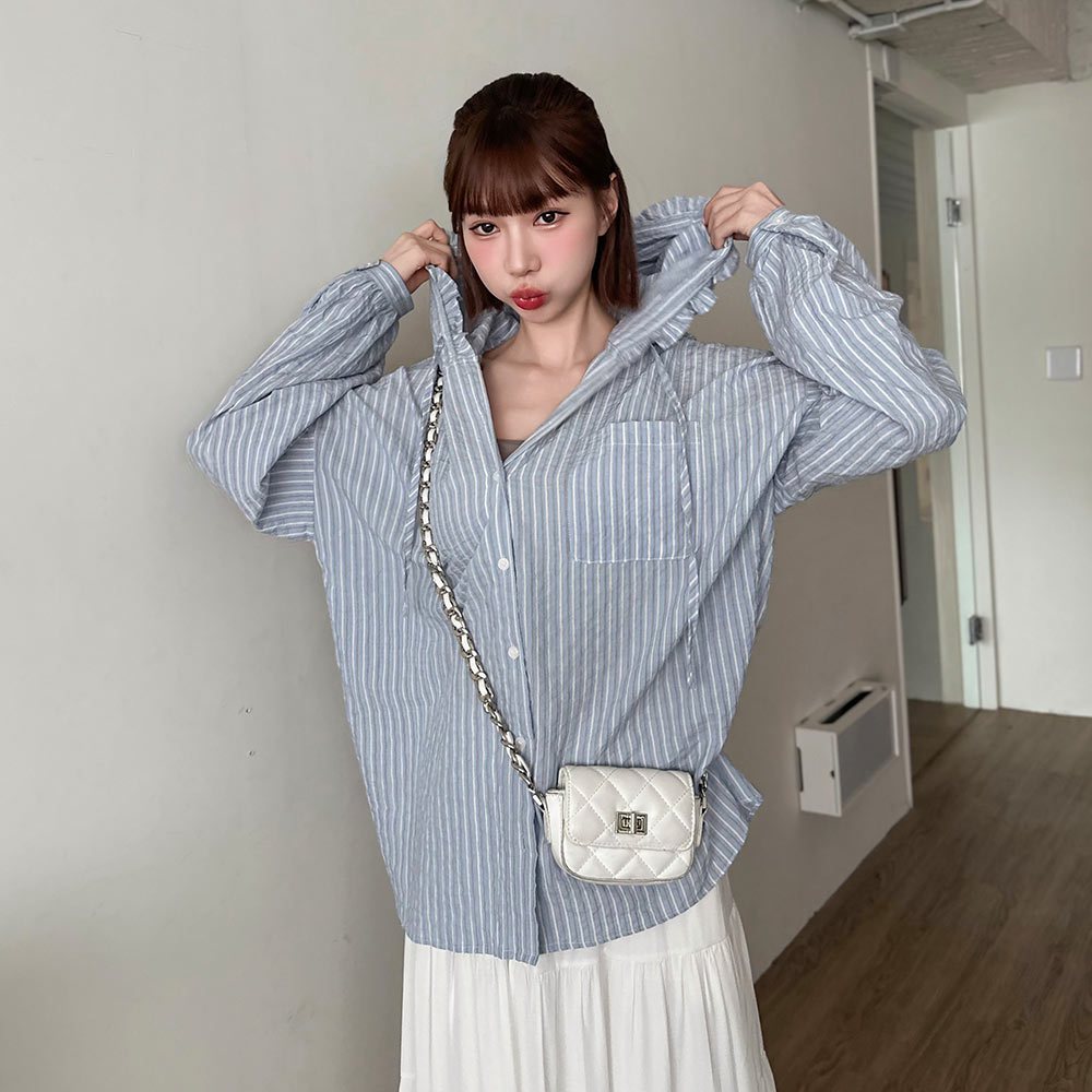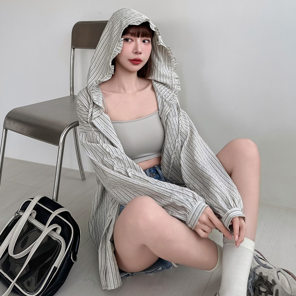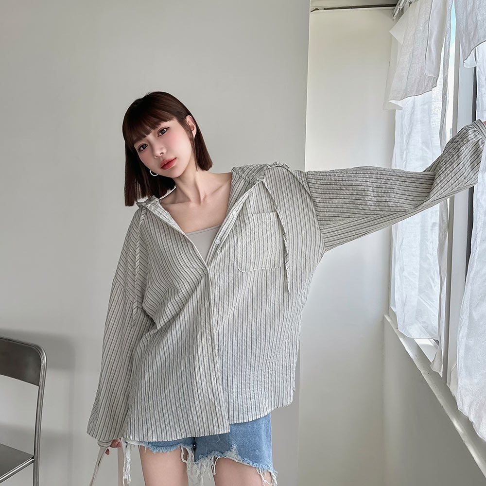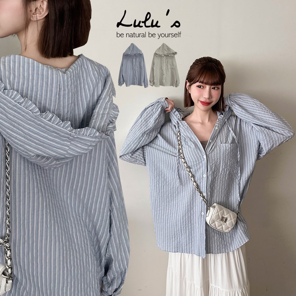 LULUS/花邊直紋連帽襯衫2色【A01250501】輕薄 外套 250702杏|藍Shirts & BlousesLULUS