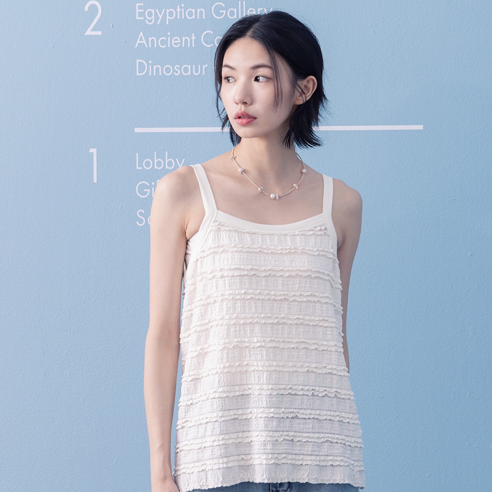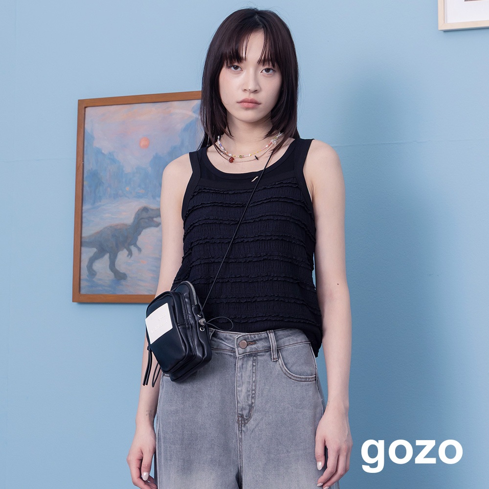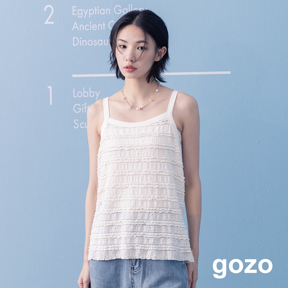【gozo】多層次蕾絲細肩帶背心(米白/黑色_F) | 女裝 圓領 涼爽米白,F|黑色,FTanks & Camisolesgozo 品牌旗艦店