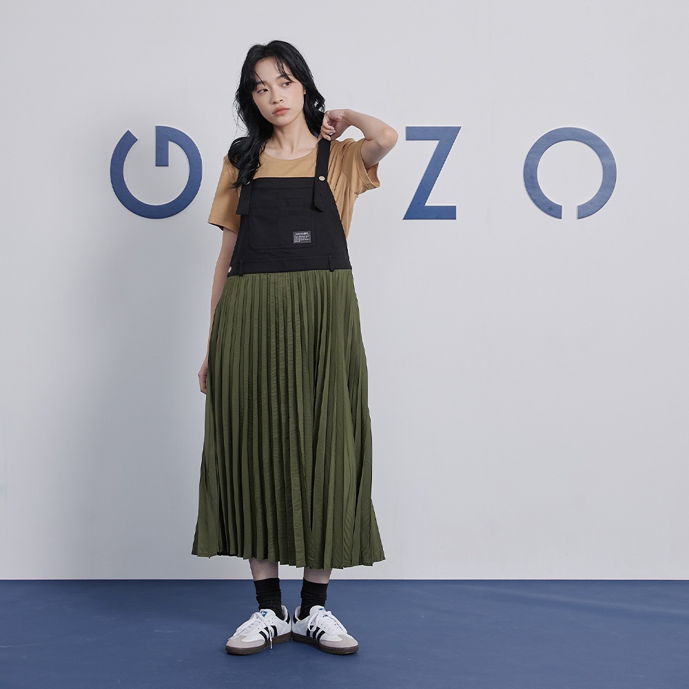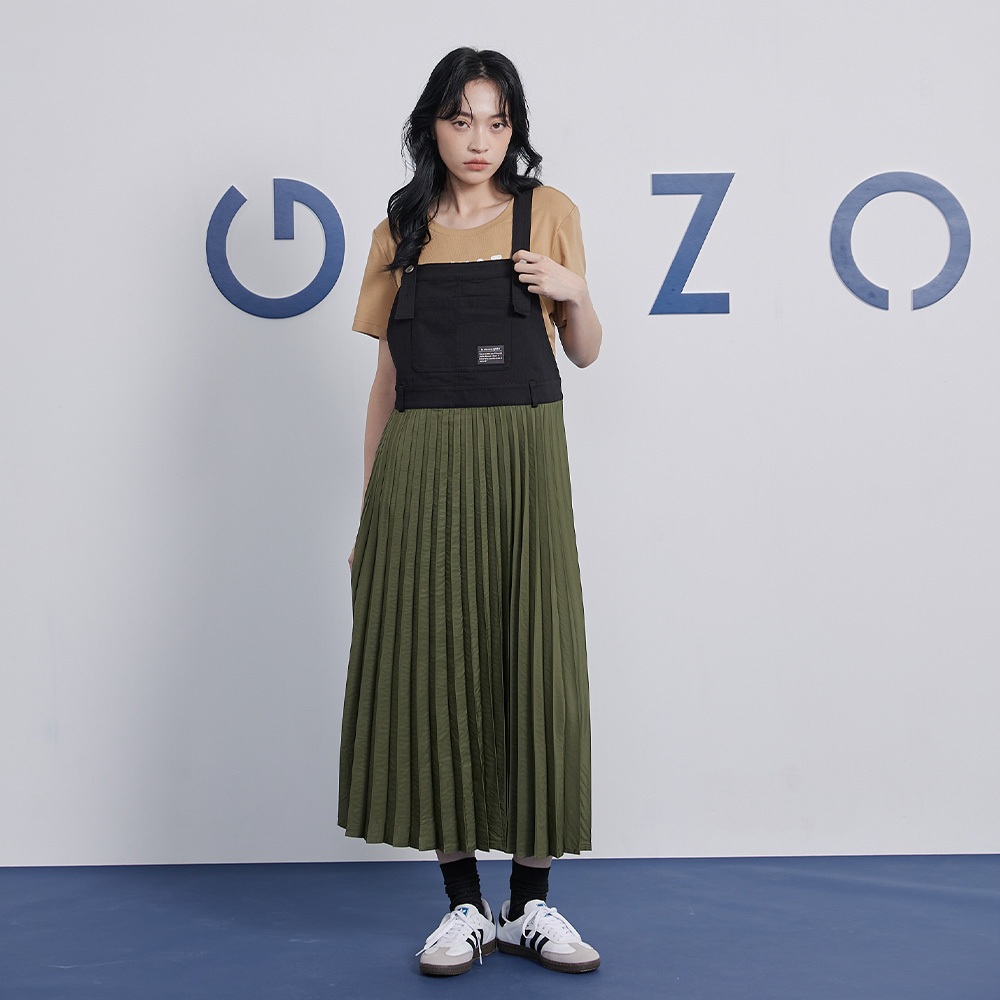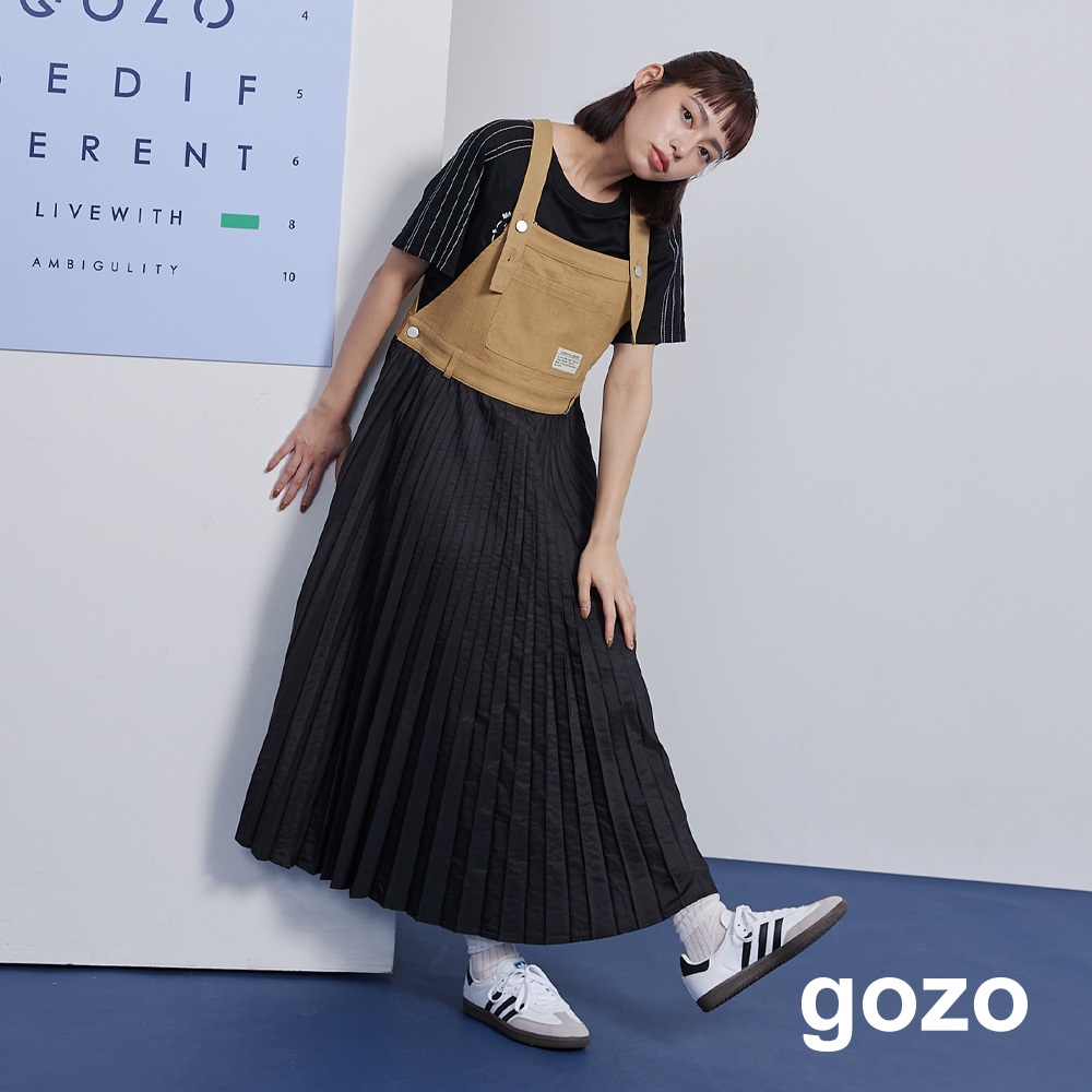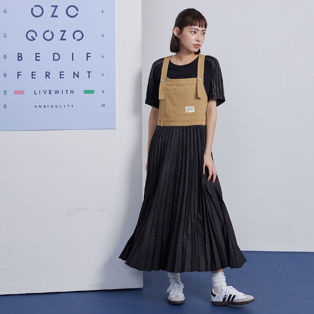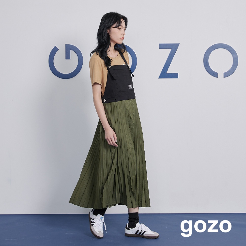 【gozo】工裝吊帶百褶洋裝(黑色/卡其_F) | 女裝 顯瘦 休閒 吊帶裙黑色,F|卡其,Fgozo 品牌旗艦店