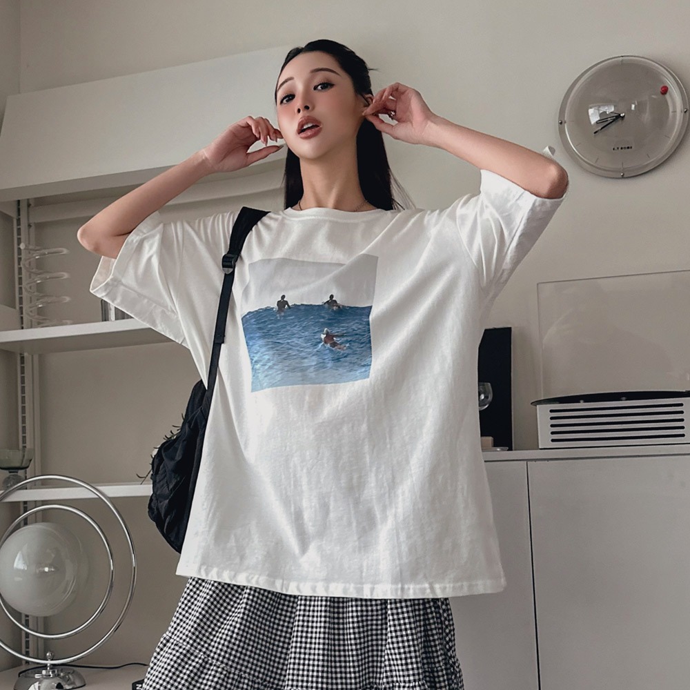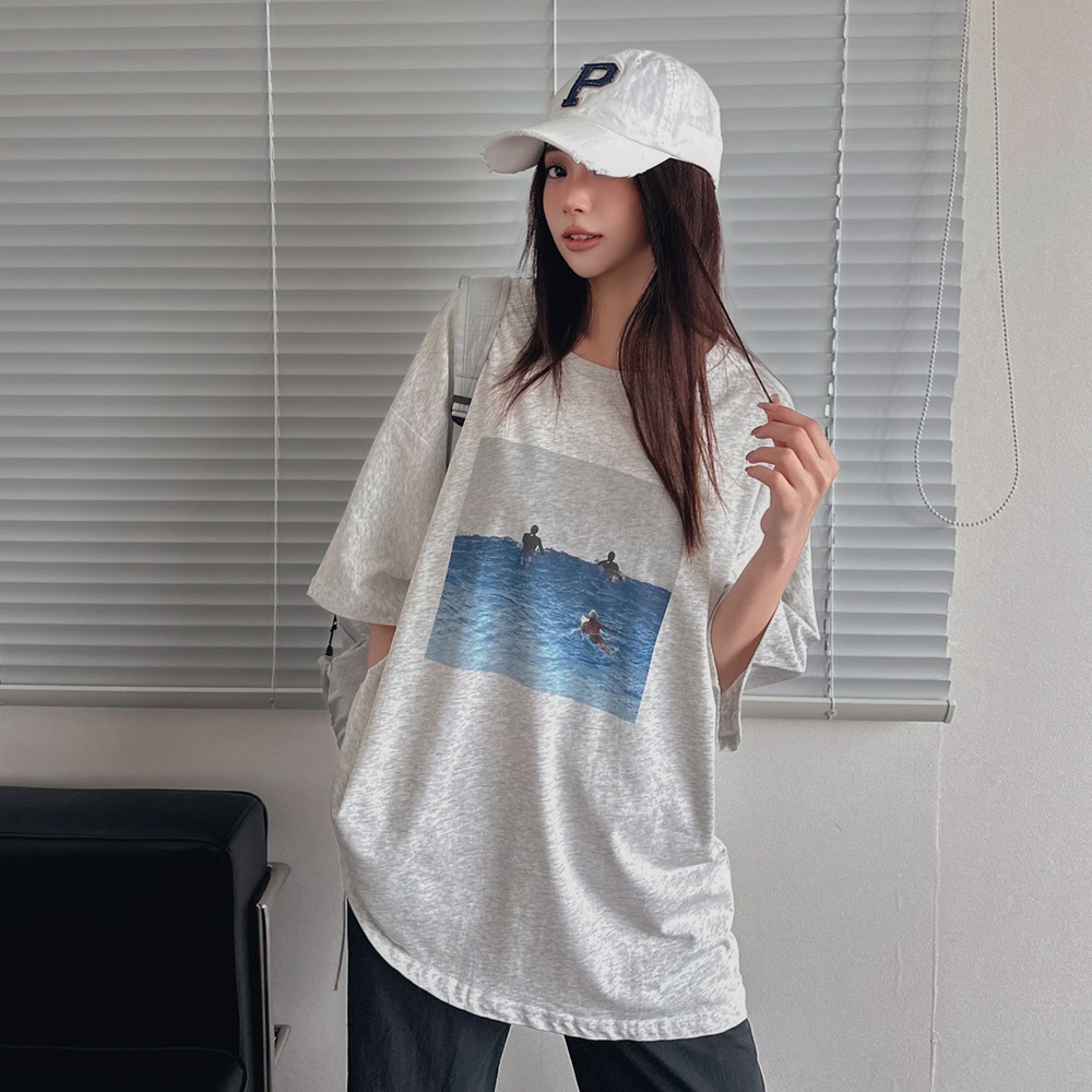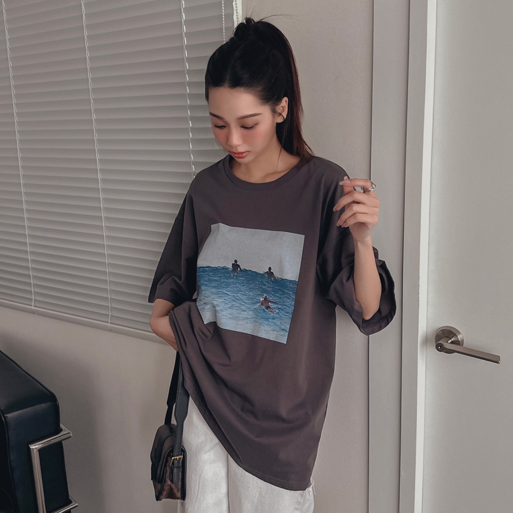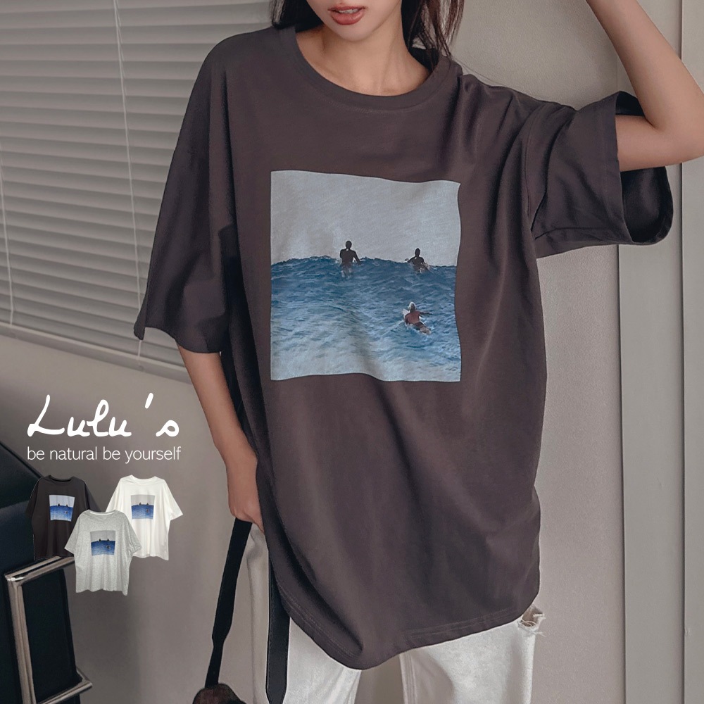 LULUS/現貨/海邊衝浪膠印T恤3色【A01250405】250611深灰|白|白灰T-shirtsLULUS