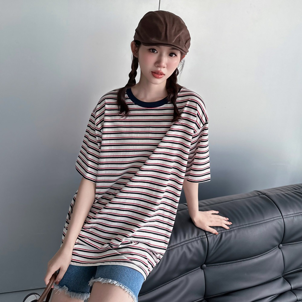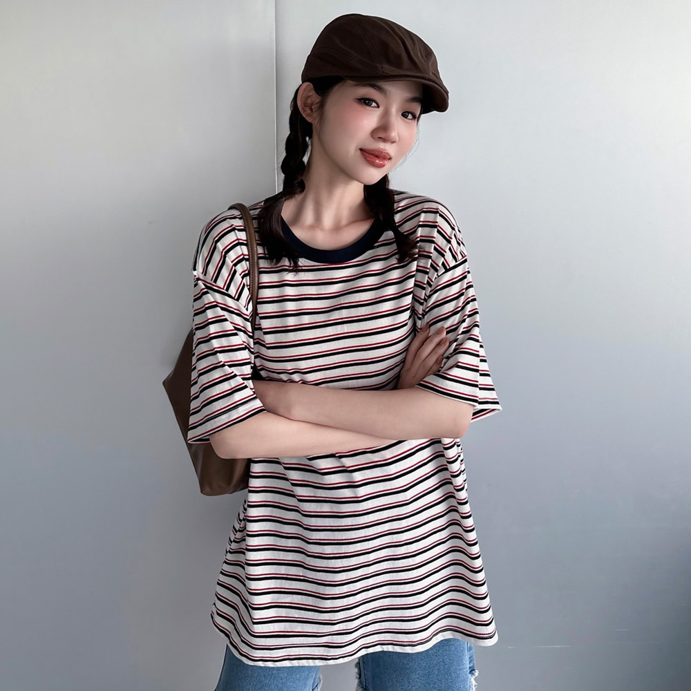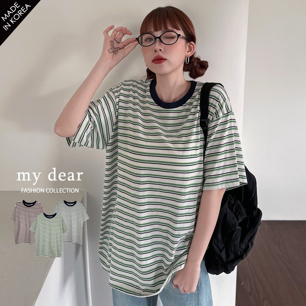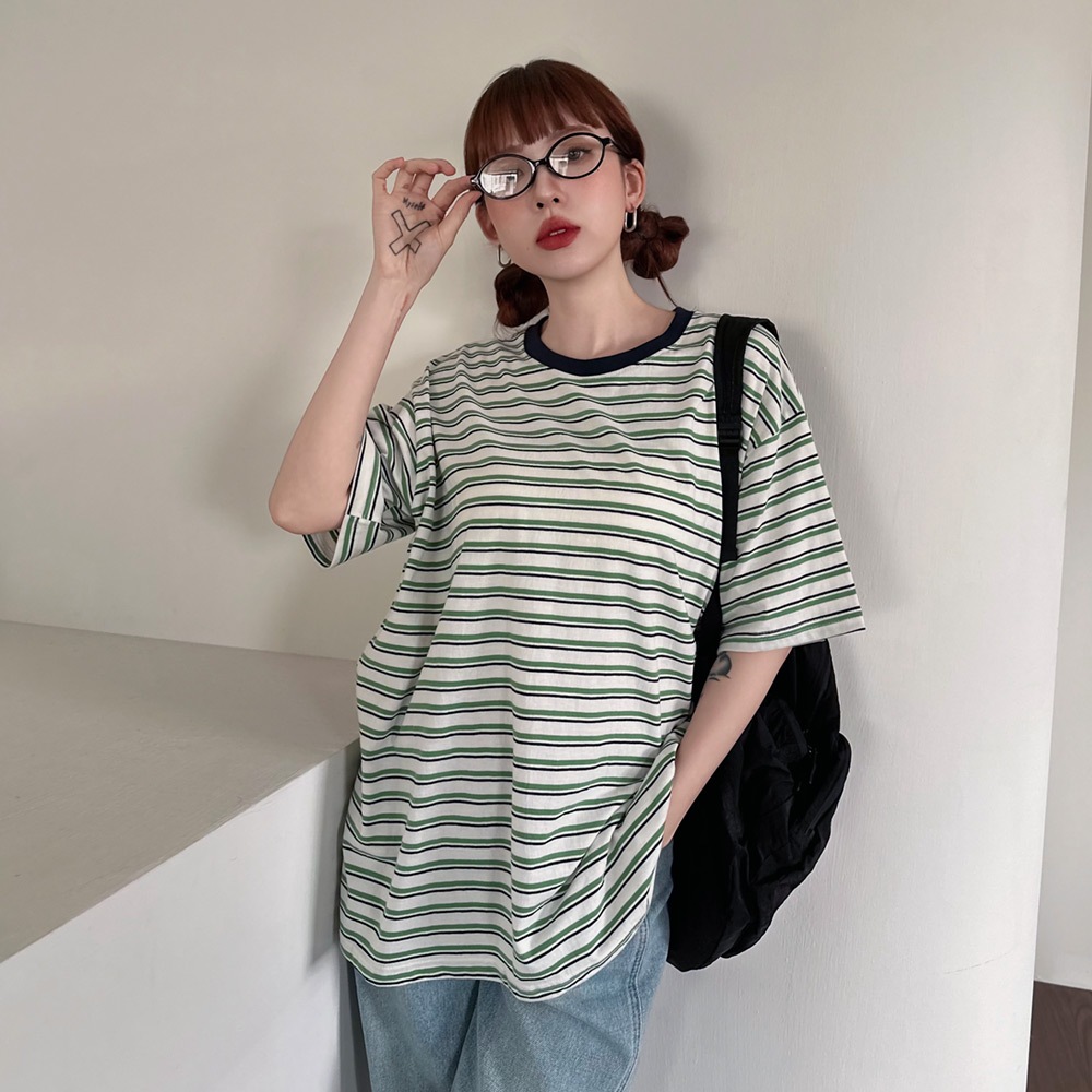 LULUS韓製/撞色橫紋寬鬆T恤3色【A01250399】韓國T 正韓250612紅|綠|藍T-shirtsLULUS