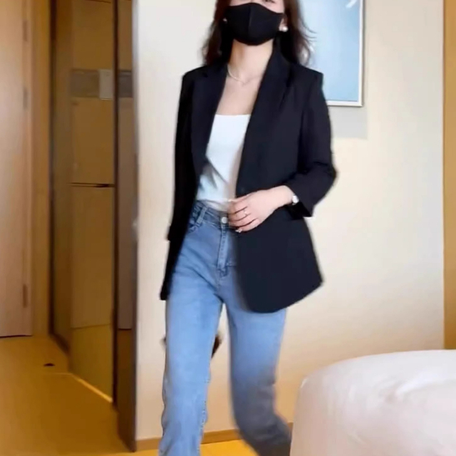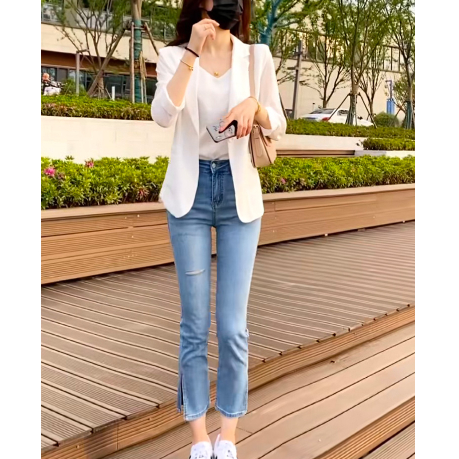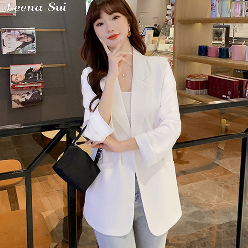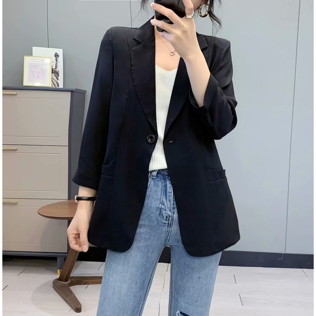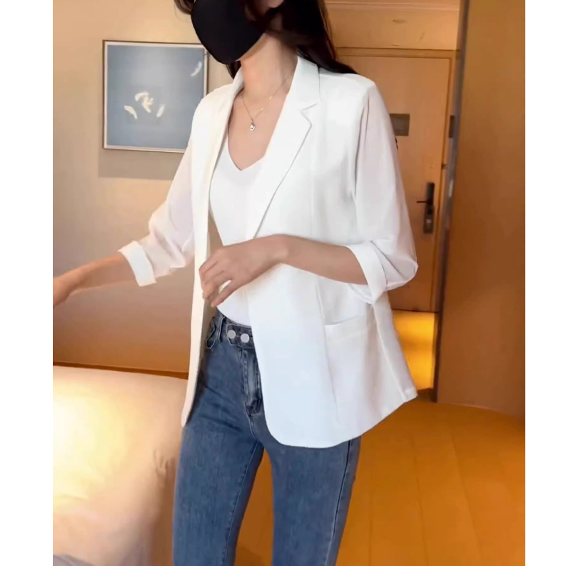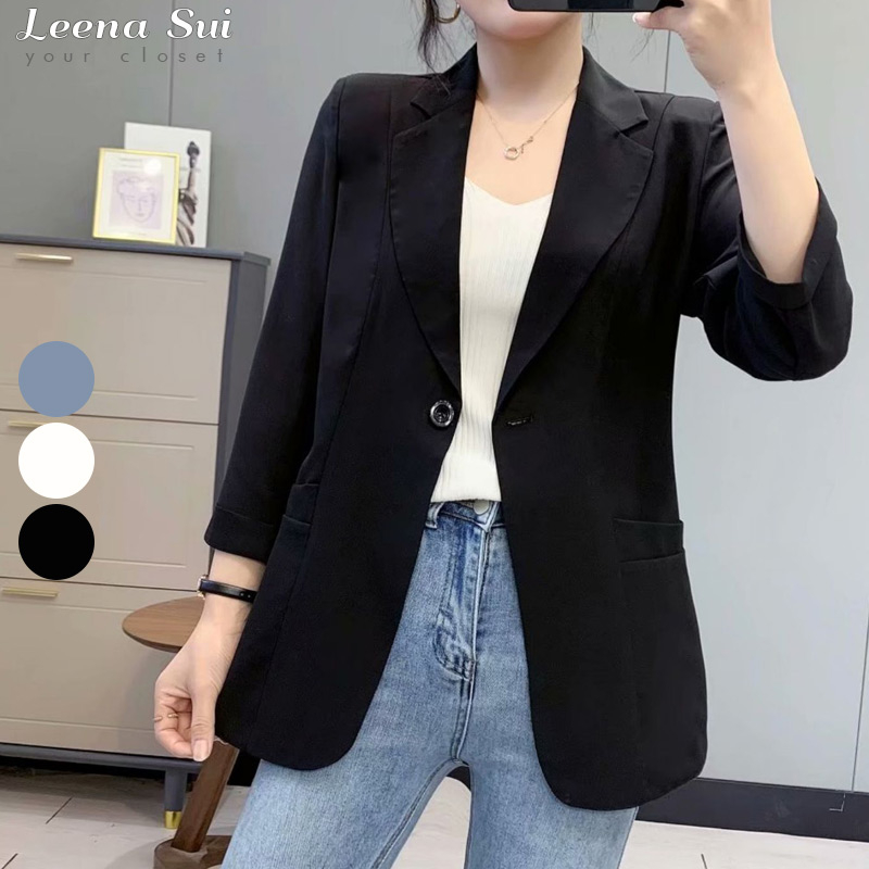 防曬外套 小西裝外套 薄款西裝 七分袖外套 春夏薄款時尚休閒寬鬆防曬開襟衫外套070012黑|白|牛仔藍BlazersLeenaSui ~台灣賣家 隔日到貨