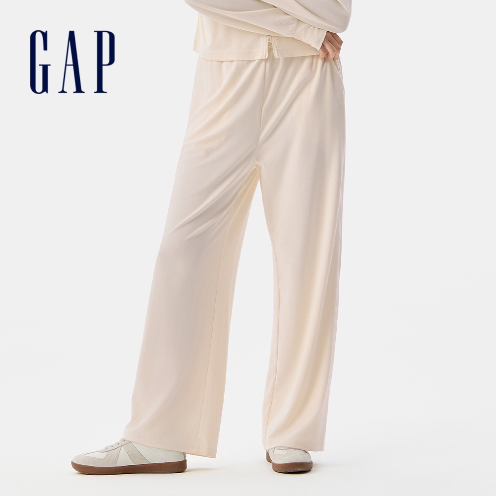 Gap 女裝 Logo刺繡防曬抽繩鬆緊寬褲-米色(765003)M|L|XL|XS|SPantsGap官方旗艦店