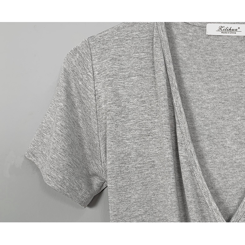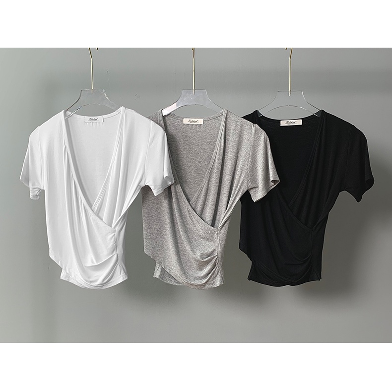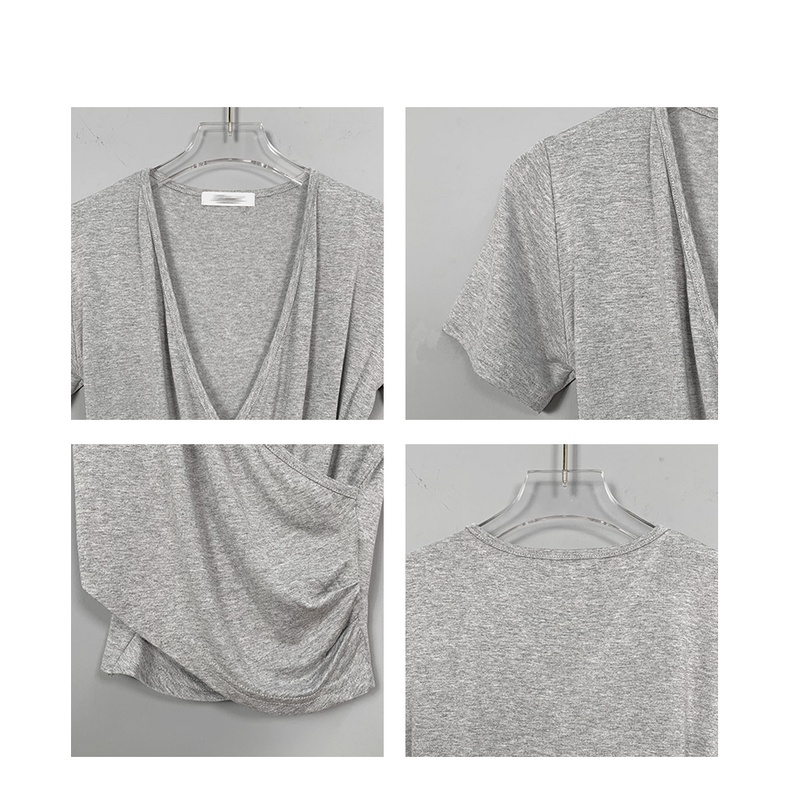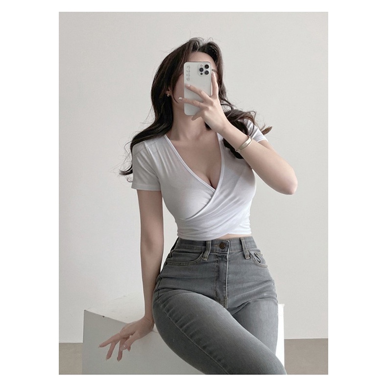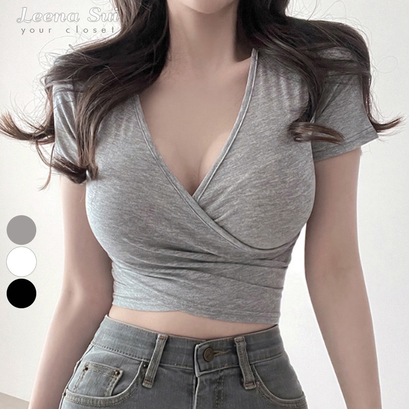 短版上衣 性感深V顯胸女人味親膚緊身短款短袖T恤上衣 022883黑|白|灰T-shirtsLeenaSui ~台灣賣家 隔日到貨