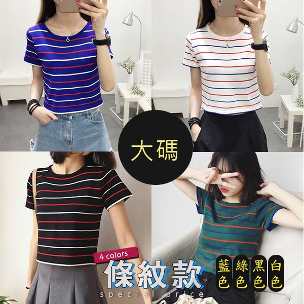 短版上衣 性感露腰顯瘦條紋短版針織上衣 短袖上衣 針織毛線衫 020145條紋-藍色(F碼)|條紋-綠色(F碼)|條紋-白色(F碼)|條紋-黑色(F碼)|條紋-藍色(大碼)|條紋-綠色(大碼)|條紋-黑色(大碼)|條紋-白色(大碼)LeenaSui ~台灣賣家 隔日到貨