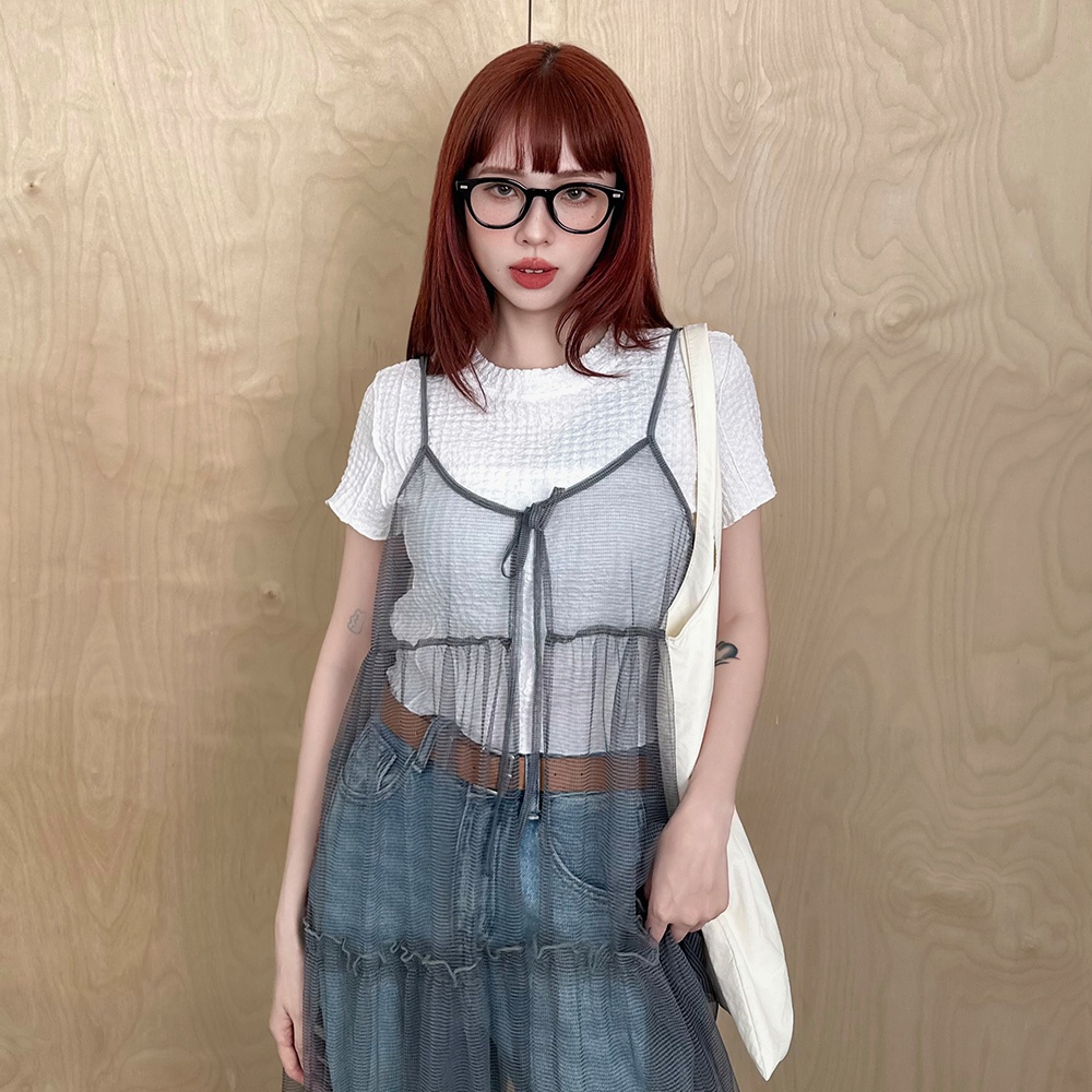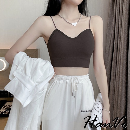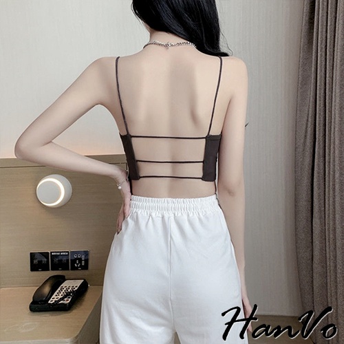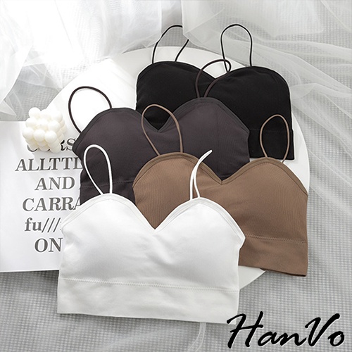 【HanVo】細肩帶短版簍空小可愛 附可拆式胸墊 韓系百搭內搭打底小可愛 女生上衣 女生衣著 A09-5057黑色|白色|灰紫|卡其Tanks & CamisolesHanVo Wear Collection