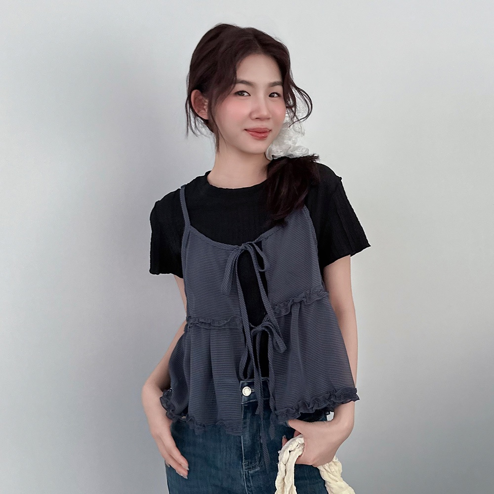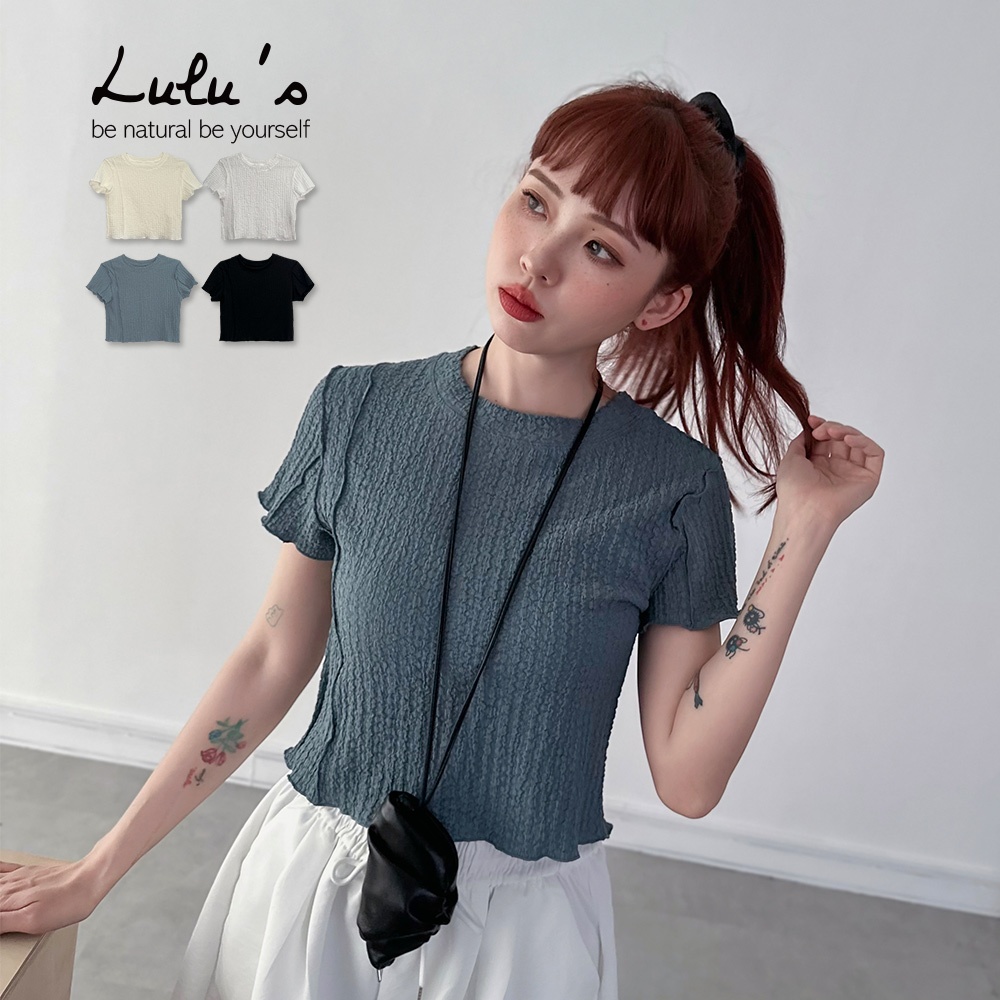 LULUS/立體壓紋木耳邊上衣4色【A01250537】250716杏|黑|藍|白T-shirtsLULUS