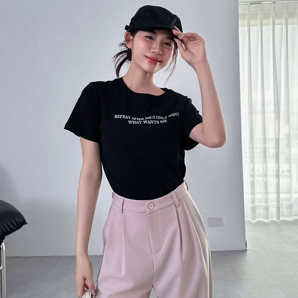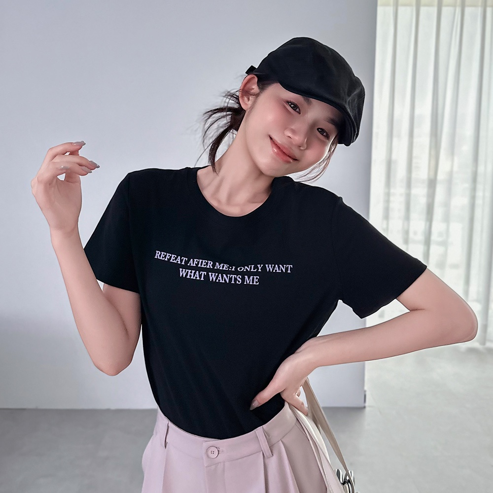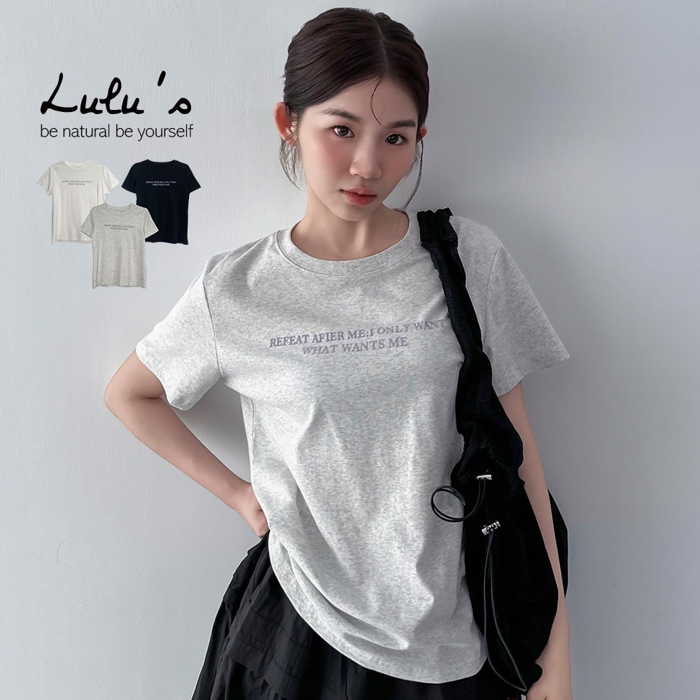 LULUS/雙排植絨英字上衣3色【A01250394】250710黑|白|白灰T-shirtsLULUS