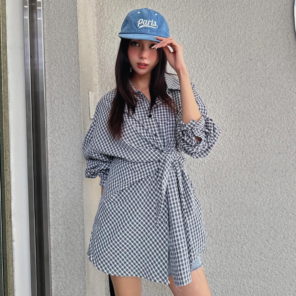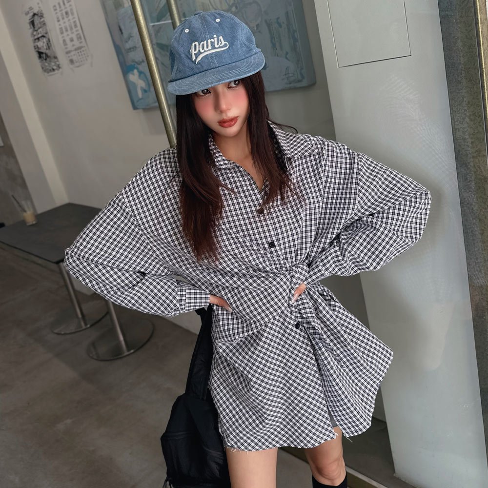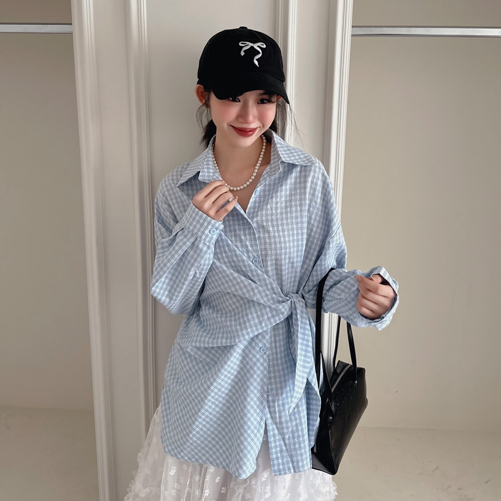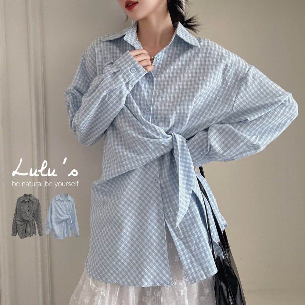 LULUS/現貨/小格紋側腰綁帶襯衫/格紋素色綜合版【A01250224】【A01250226】250416淺藍|黑|白|格紋淺藍|格紋黑Shirts & BlousesLULUS