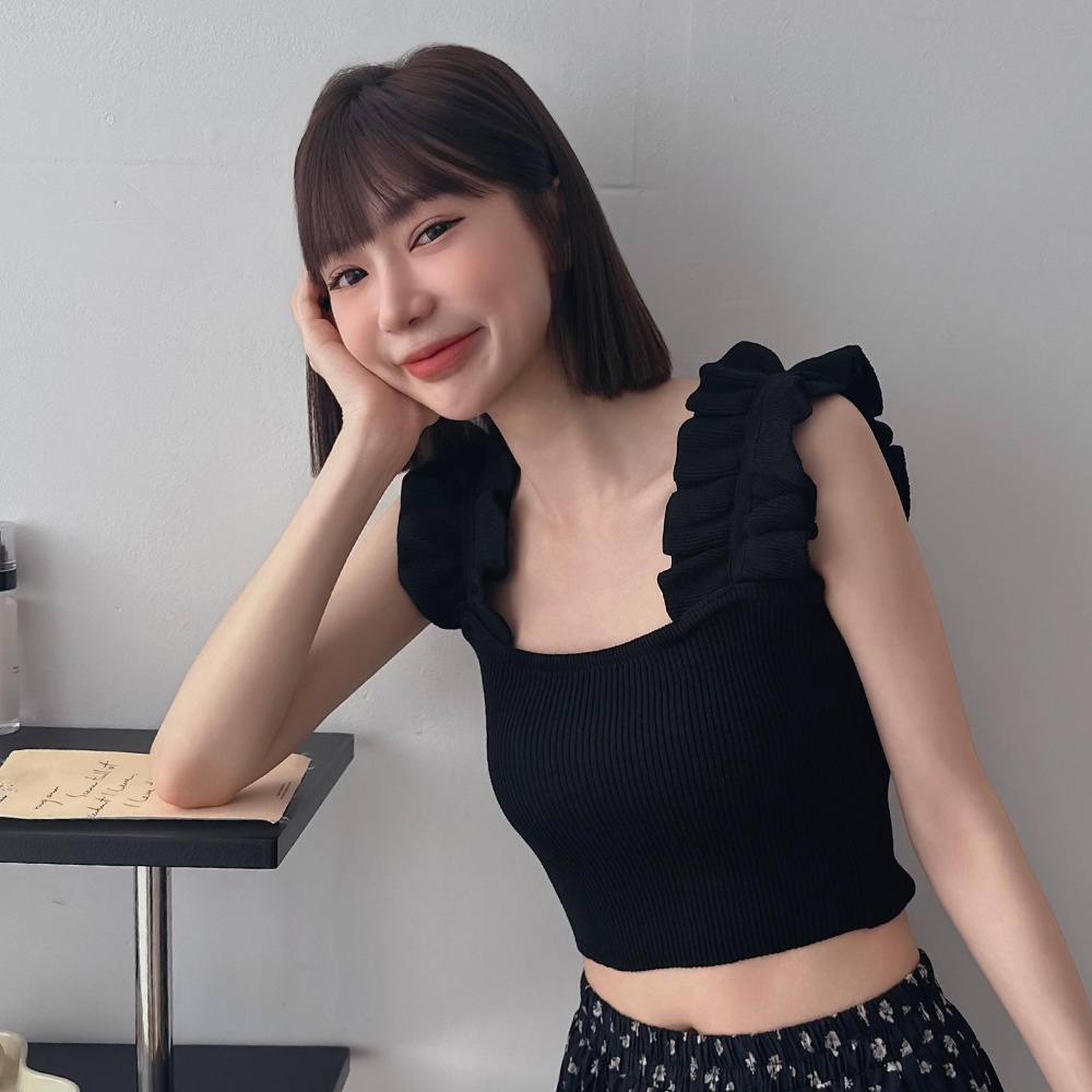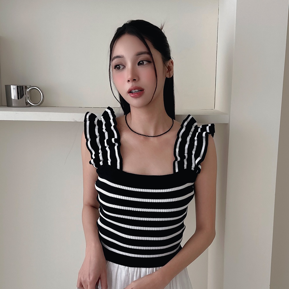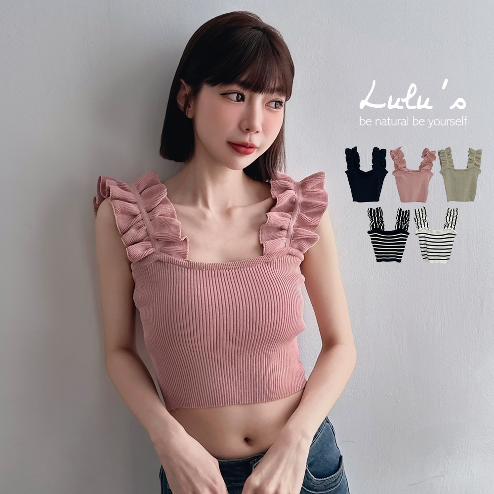 LULUS/大花邊肩帶針織上衣5色【A01250264】250507灰綠|粉|黑|條-黑|條-白T-shirtsLULUS