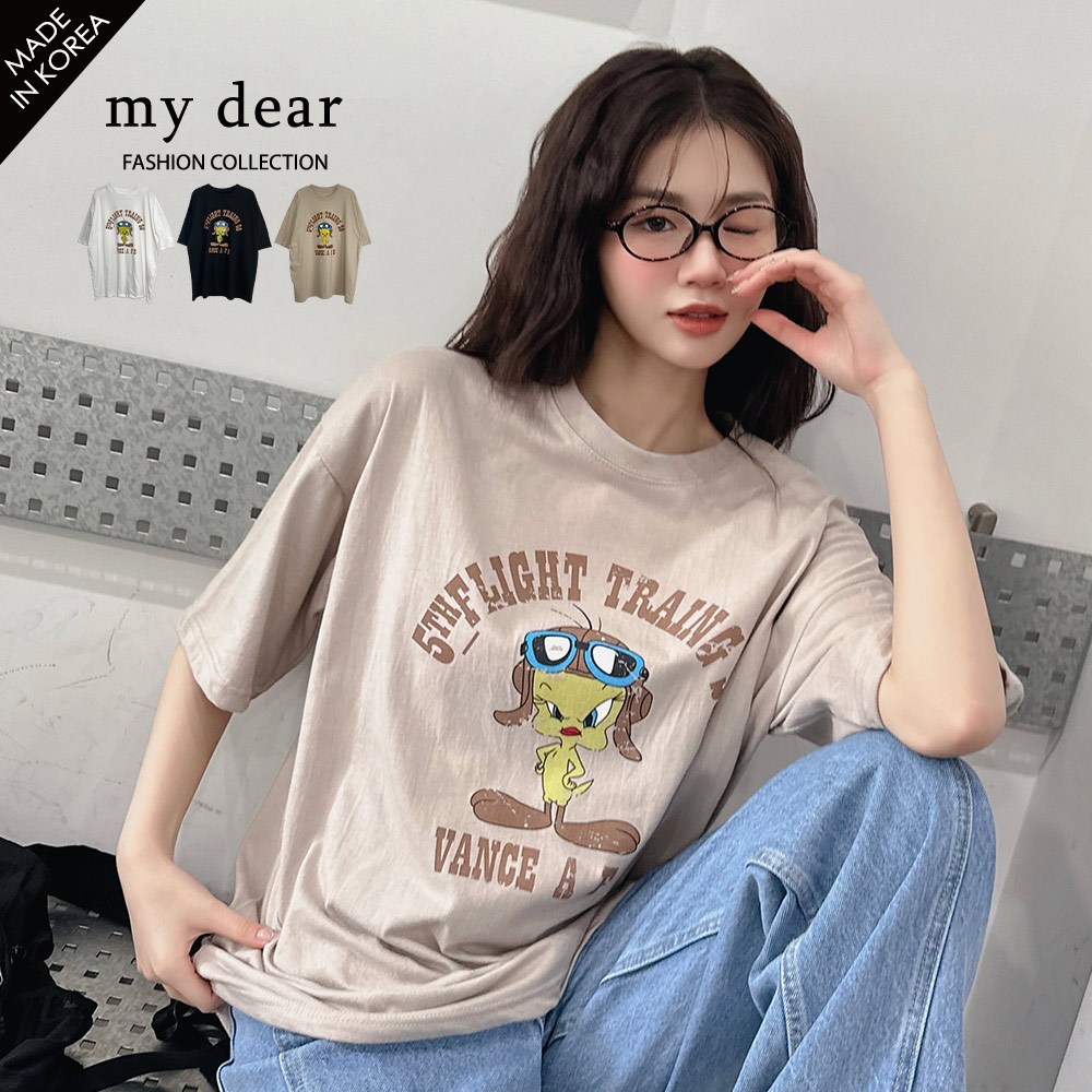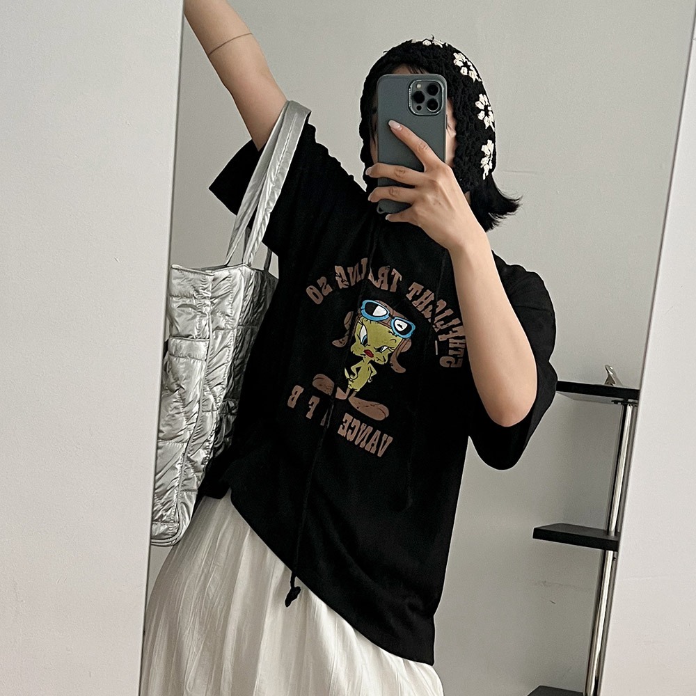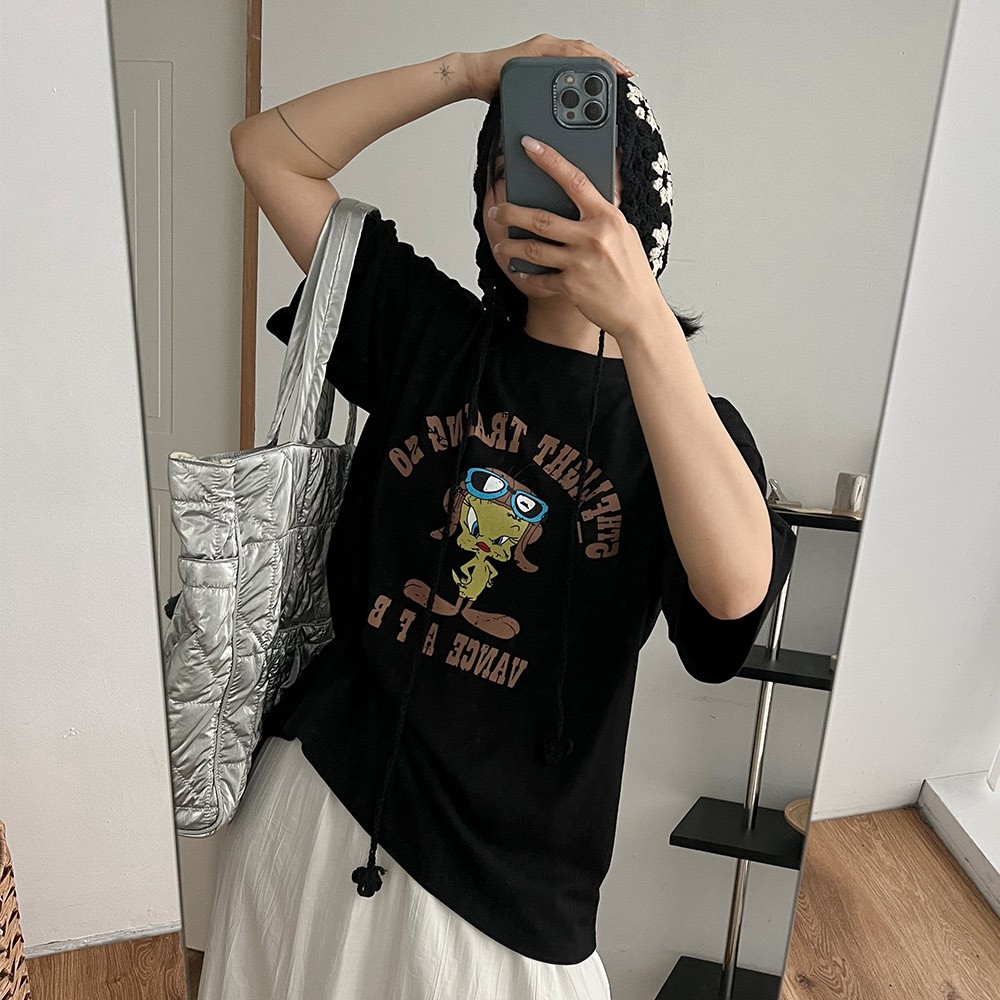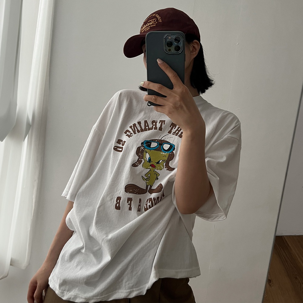 LULUS韓製/氣噗噗崔滴卡通圖樣寬鬆T恤4色【A01240039】正韓 韓國上衣 男女250417奶茶|黑|白T-shirtsLULUS