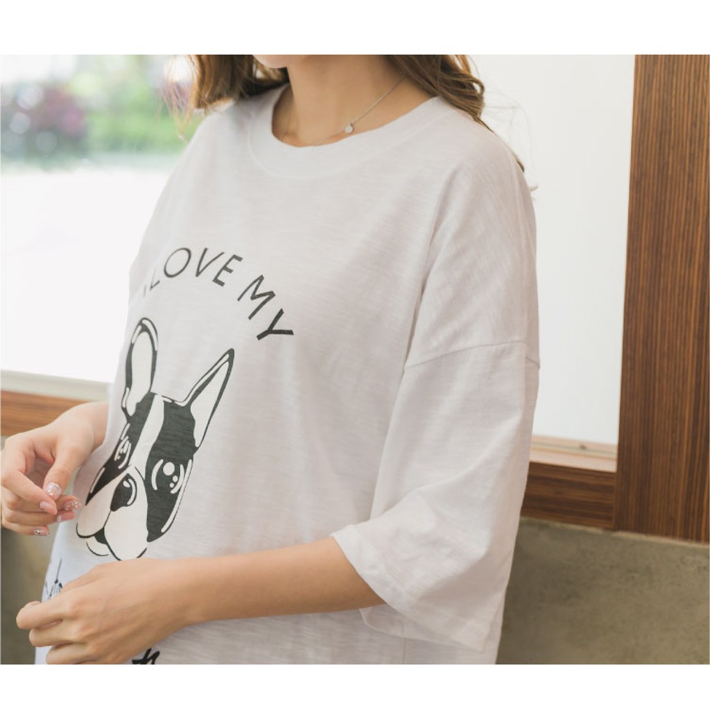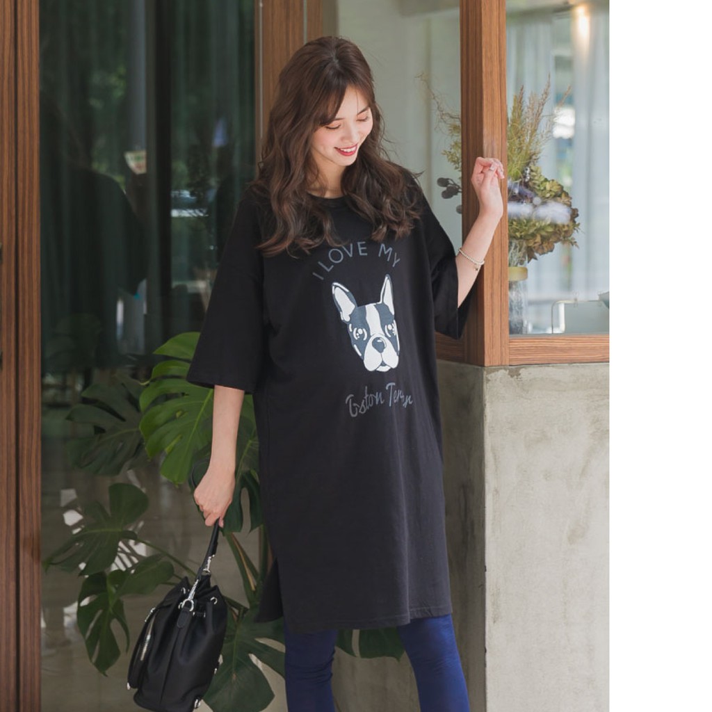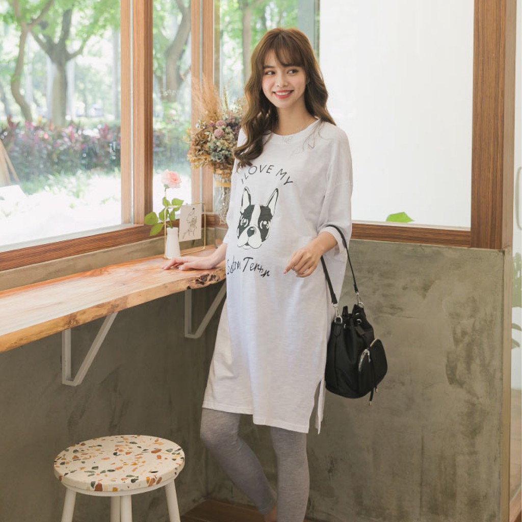 Mamamia孕婦裝 i love狗狗寬版T孕婦裝 正韓製 短袖 孕婦上衣 長版上衣 [C3084]白|黑Maternity TopsMamamia孕婦裝
