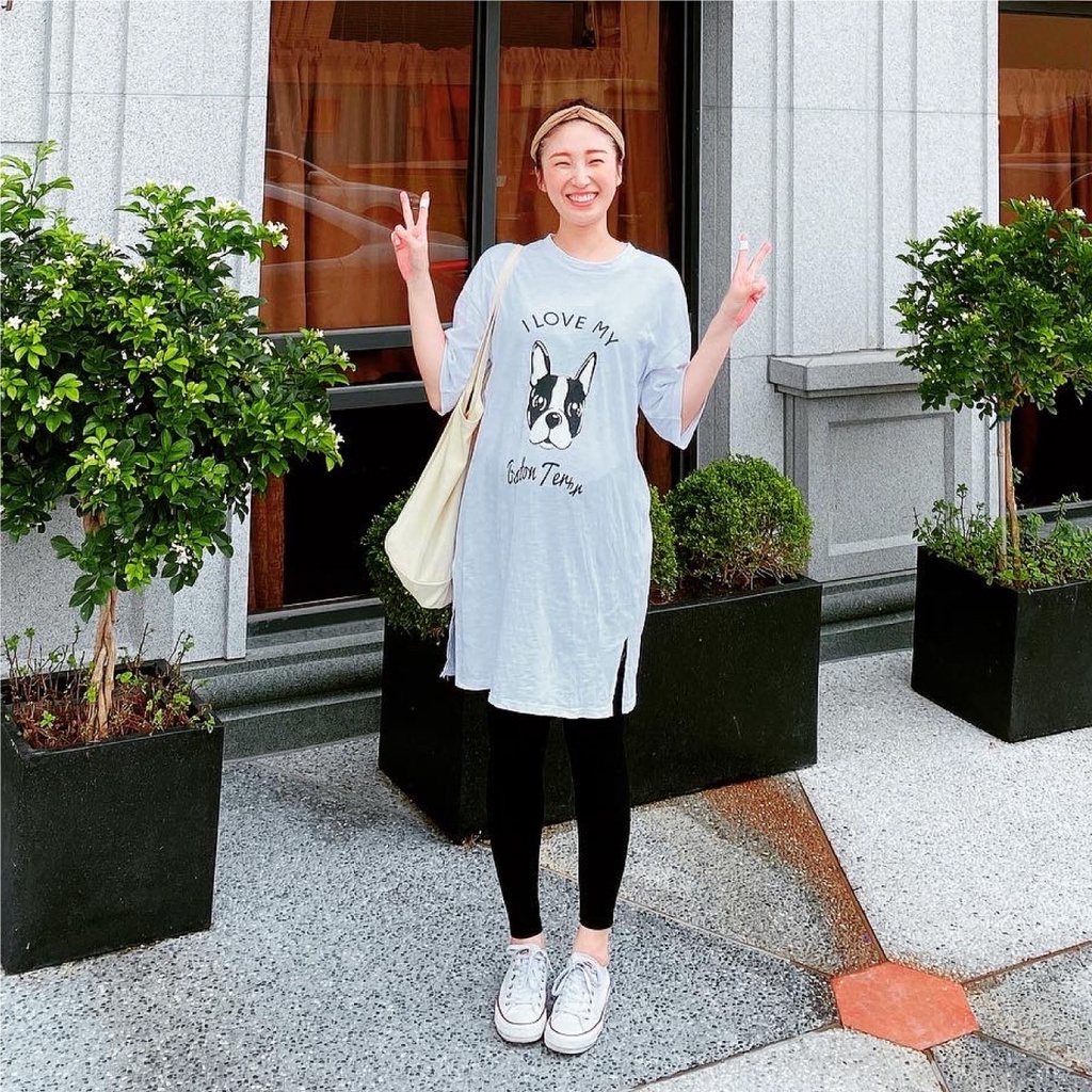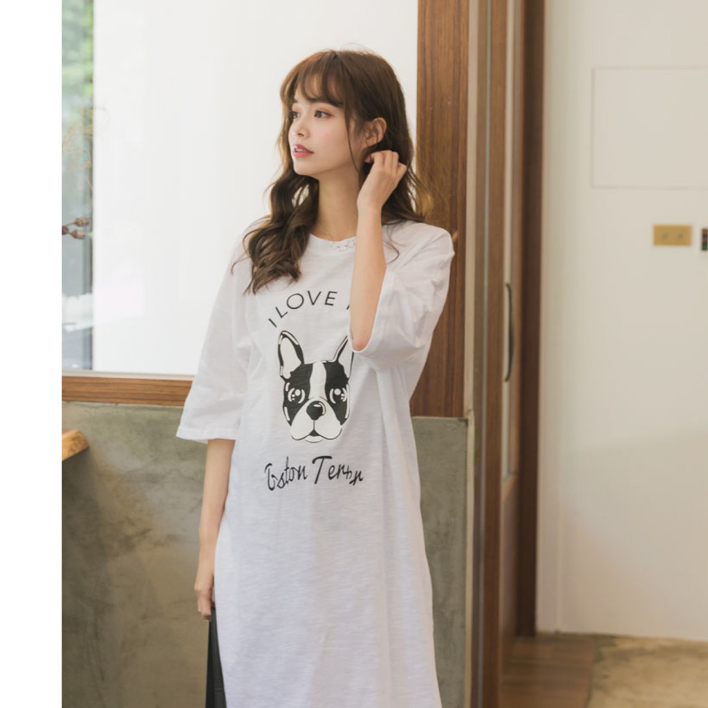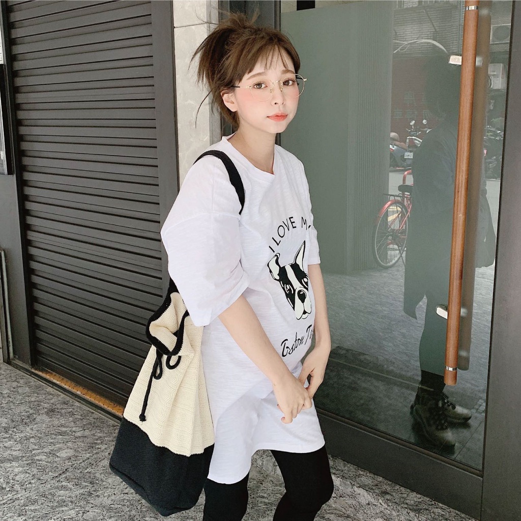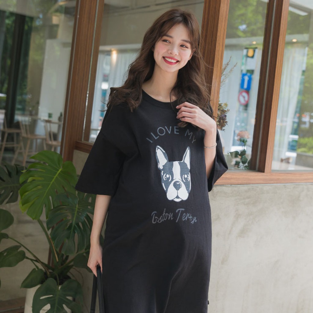 Mamamia孕婦裝 i love狗狗寬版T孕婦裝 正韓製 短袖 孕婦上衣 長版上衣 [C3084]白|黑Maternity TopsMamamia孕婦裝