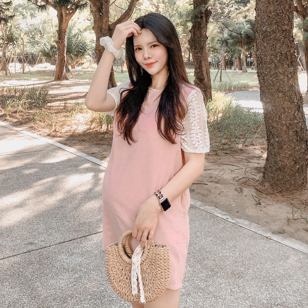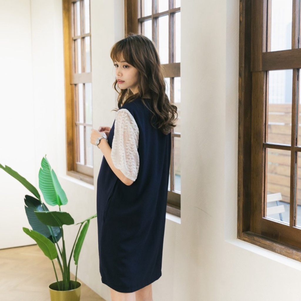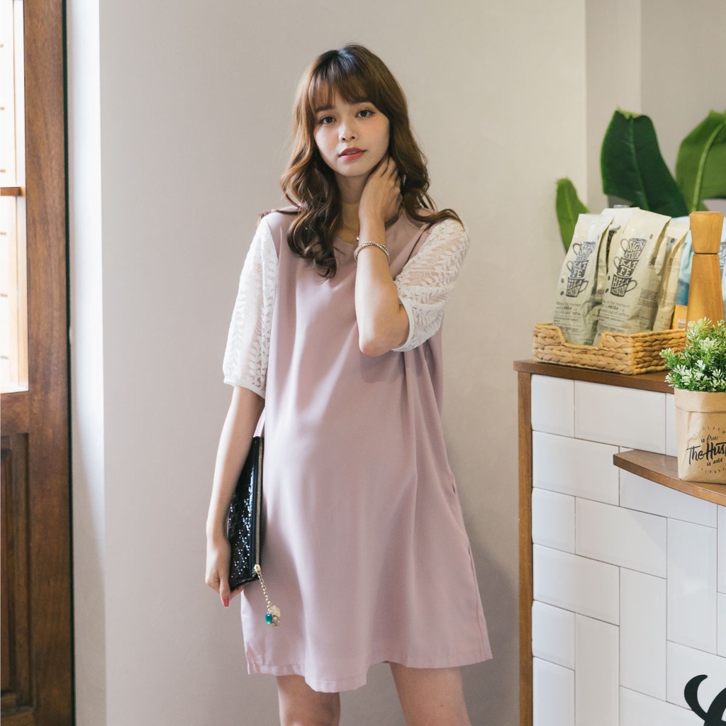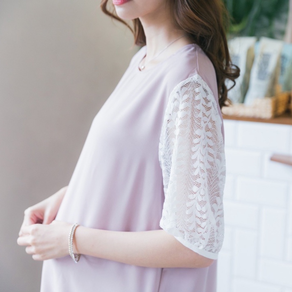 Mamamia孕婦裝 素面五分袖蕾絲雪紡孕婦裝 洋裝 短袖 孕婦裙 孕婦連身裙 連身洋裝 孕婦洋裝 [D7041]粉,M|粉,L|藍,M|藍,LMaternity DressesMamamia孕婦裝