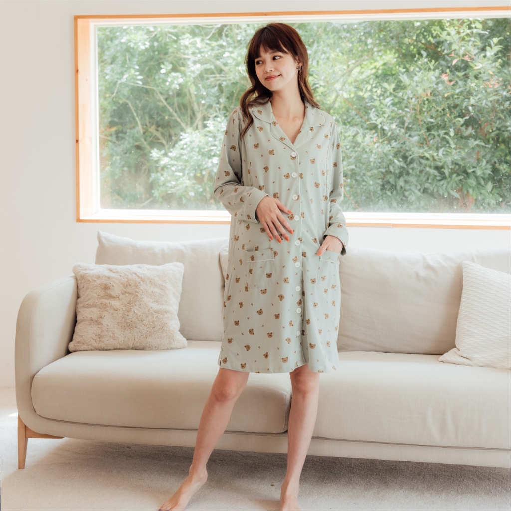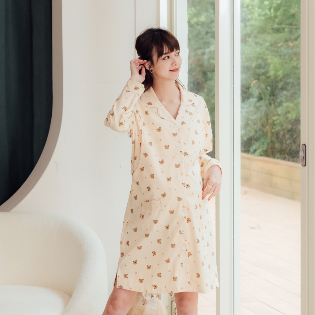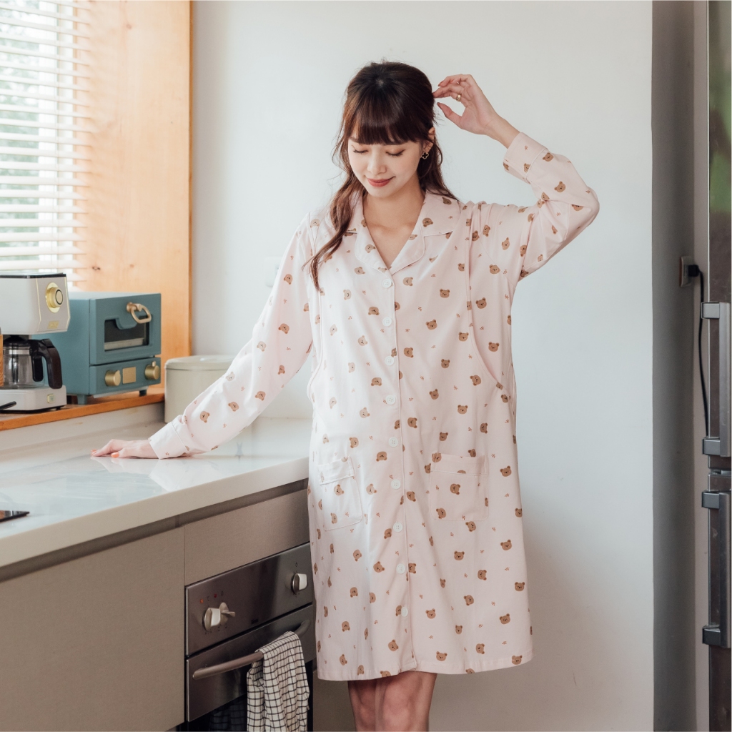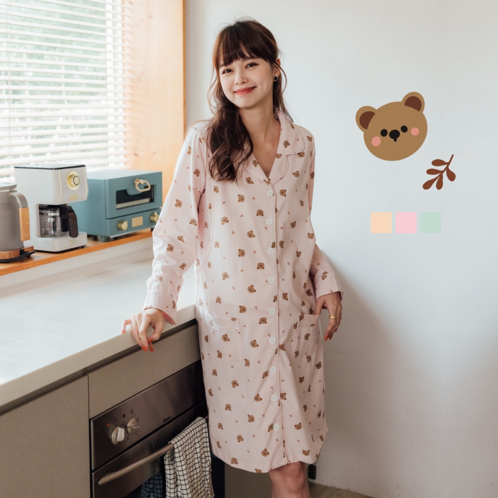 Mamamia孕婦裝 cookie小熊口袋哺乳洋裝 M~XL 哺乳睡衣 孕婦裝 連衣裙 居家服 哺乳衣 [A1894]黃,XL|粉,XL|綠,XL|黃,L|粉,M|粉,L|綠,M|綠,L|黃,MBreastfeeding WearMamamia孕婦裝