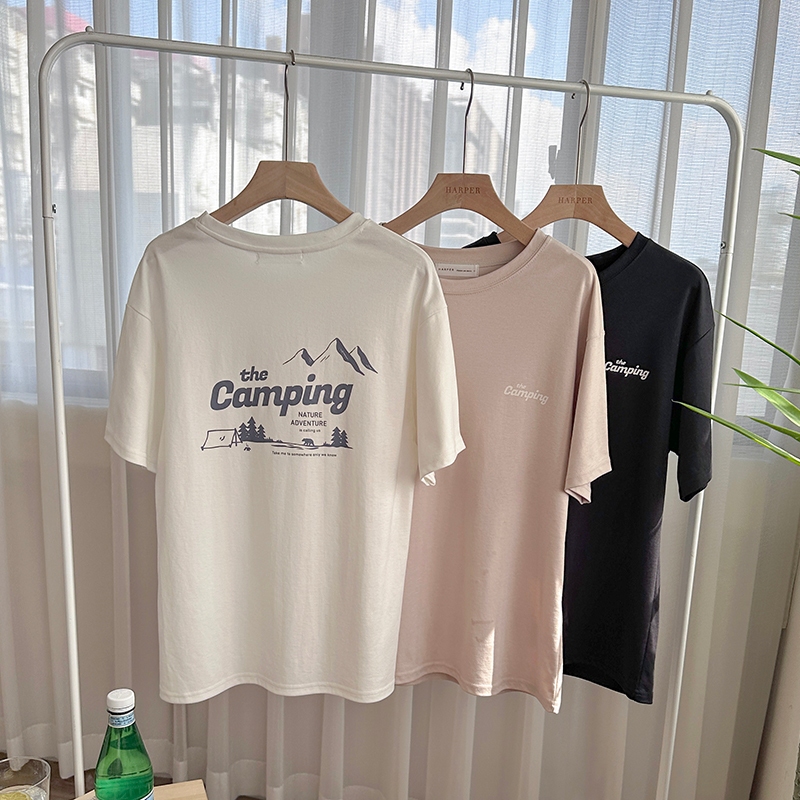 【HARPER】自訂露營印花字母T恤 | 現貨 短袖 字母T T恤 上衣 情侶衣【CLF15731H】白,XL|奶杏,M|奶杏,XL|黑,S|黑,L|黑,XL|白,S|白,M|奶杏,L|黑,M|白,L|奶杏,SCouple SetsHARPER