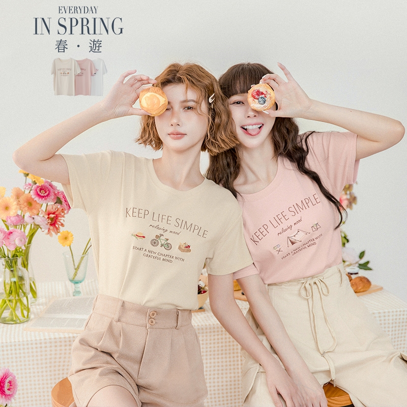 【HARPER】春遊小日子刺繡T恤 M~L 3色 |現貨 圖案T 字母T T恤【CLF15711H】旅行白,S~M|旅行白,L~XL|野餐杏,S~M|野餐杏,L~XL|露營粉,S~M|露營粉,L~XLT-shirtsHARPER