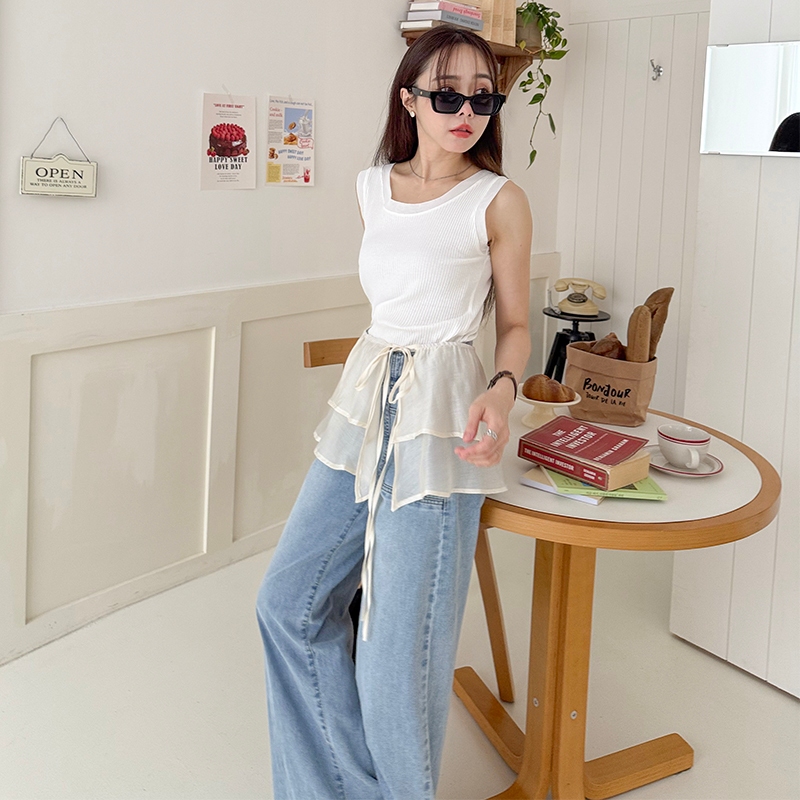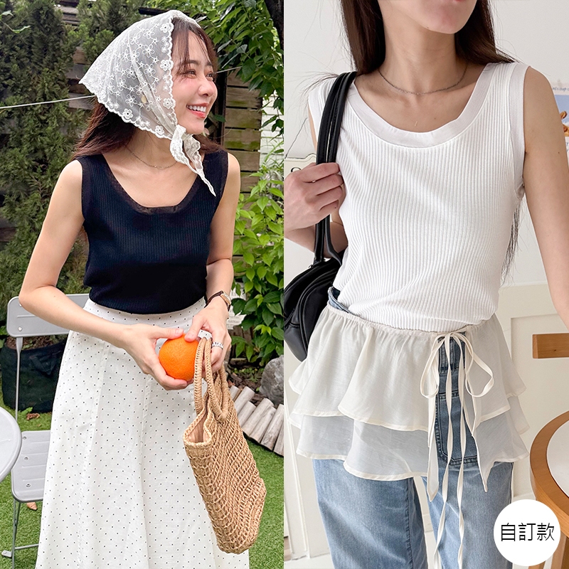 【HARPER】品牌自訂接紗坑條背心 | 現貨 無袖上衣 背心【CLB49628J】白,S~M|白,L~XL|黑,S~M|黑,L~XLTanks & CamisolesHARPER